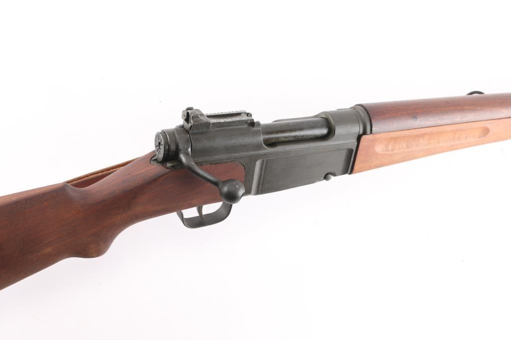 GOOD: Some minor replacement parts; metal smoothly rusted or lightly pitted in places, cleaned or re-blued; principal letters, numerals and design on metal legible; wood refinished, scratched bruised or minor cracks repaired; in good working order.