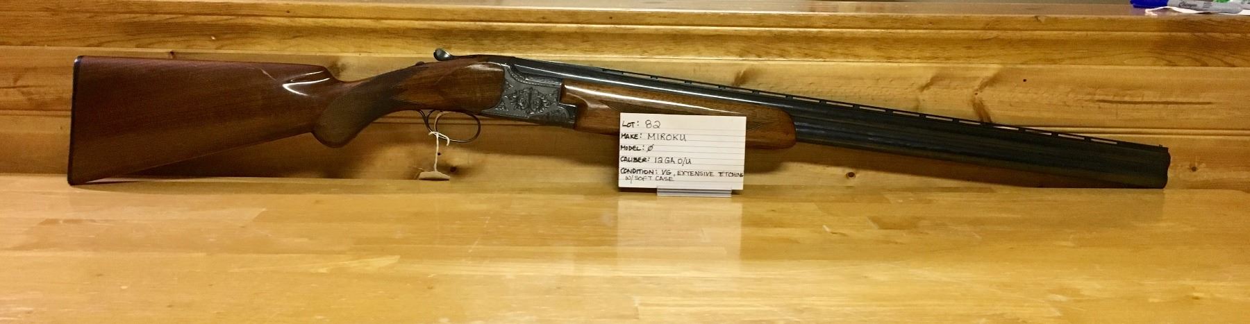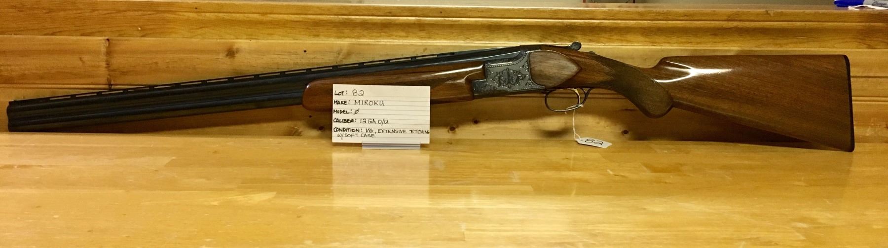 LOT: 82 MAKE: MIROKU MODEL: NONE CALIBER: 12 GA, O/U CONDITION: VG, EXTENSIVE ETCHING, W/SOFT CASE S/N: 370301