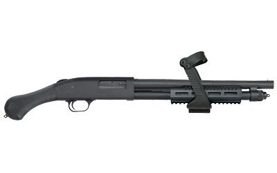 Mossberg, 590 Shockwave, Pump Action, 12 Gauge Shotgun, Stand Off 14.375" Barrel, Matte Blued Finish, Synthetic Stock, Shockkwave Grip, M-LOK Forend w/Chainsaw Strapped Grip, Cylinder Bore Choke, 5Rd, Bead Sight