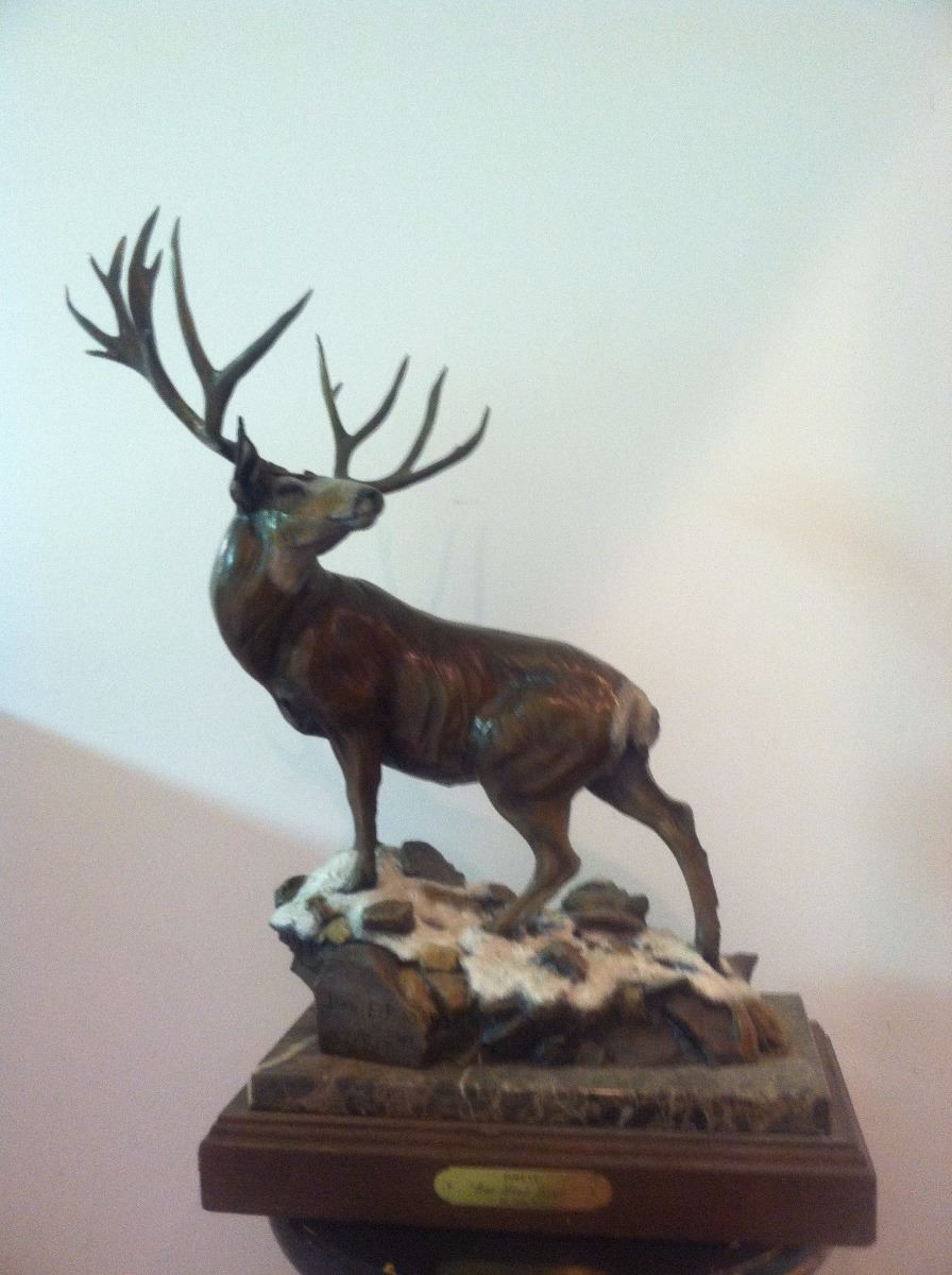 Doug Eck's art is well known nationally and he is committed to wildlife organizations such as WSF. This Bronze got his nick name because one look at his antlers your eyes would "Pop " out hence the name' Popeye' .