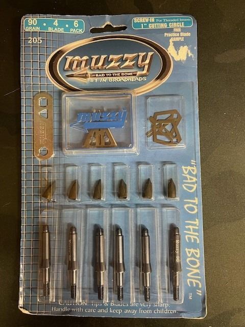 1 package - Muzzy 205 Broadheads 90 Grain 4-Blade Fixed Blade Broadhead, 6 Pack