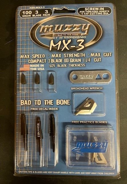 1 package - Muzzy 225-MX3-3 100 Grain, .025" 3 Blade Broadhead, 1-1/4" Cutting Diameter, 3 Pack