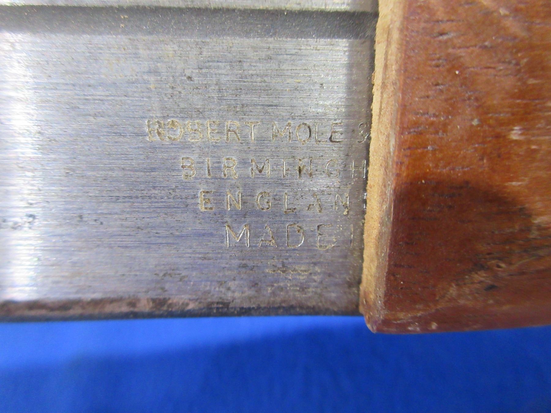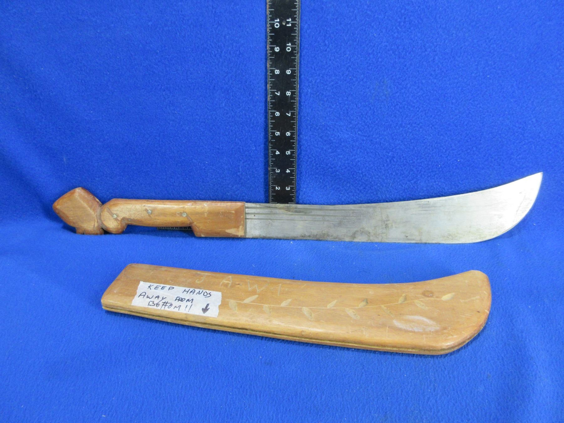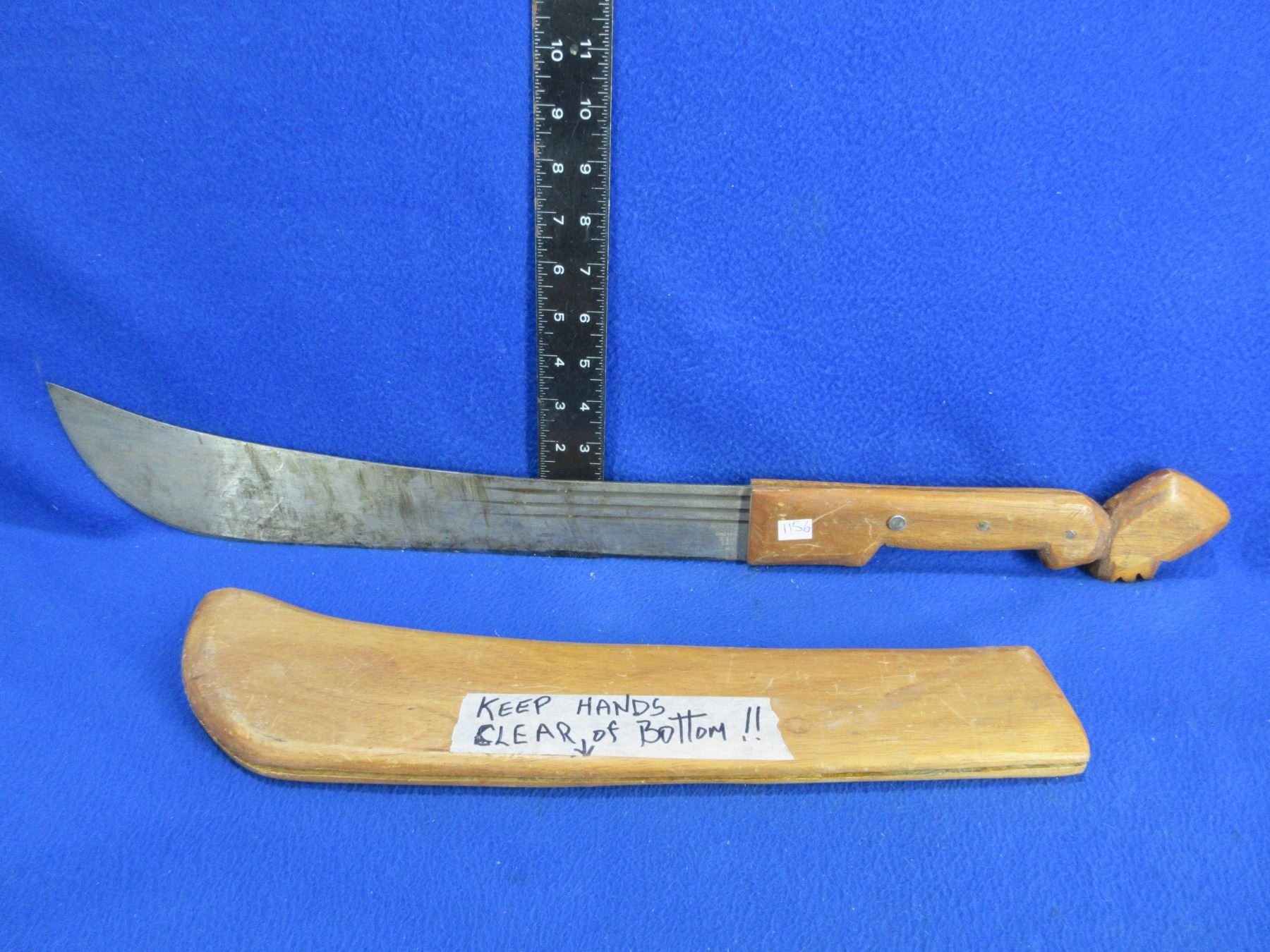 Machete - Robert Mole & Sons, Birmingham England - 15 3/4" Blade, 26 1/2" Total Length - Wood Handle and Wood Sheath Appear Handmade