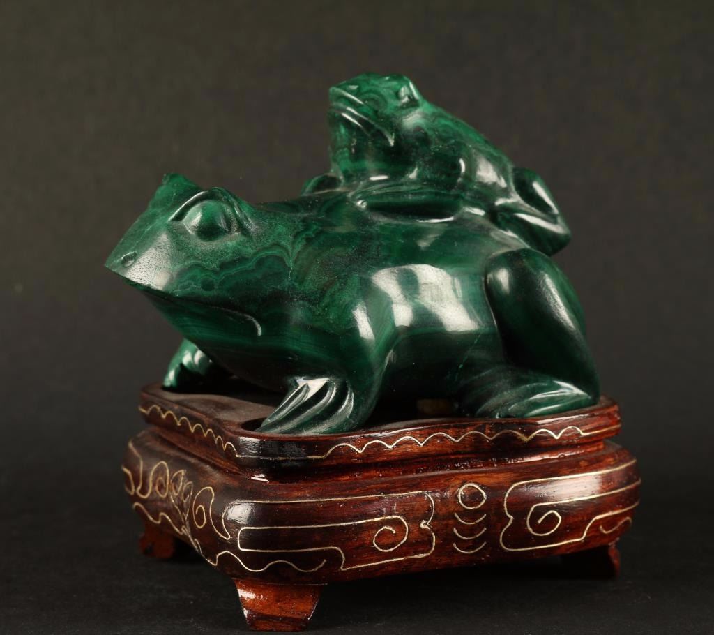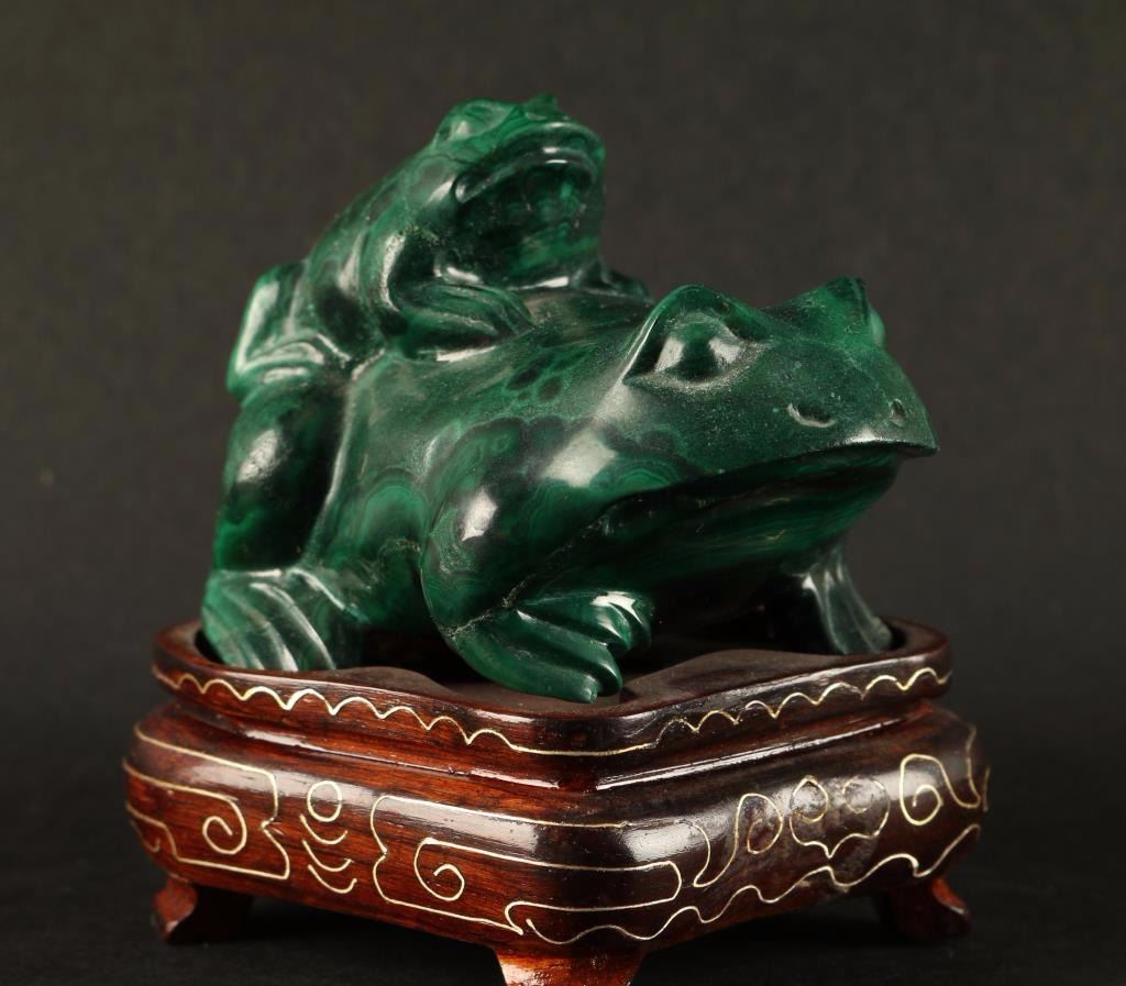 Chinese carving of a large frog with a smaller one on it's back on rosewood base. Measures 1 1/2"x 3".