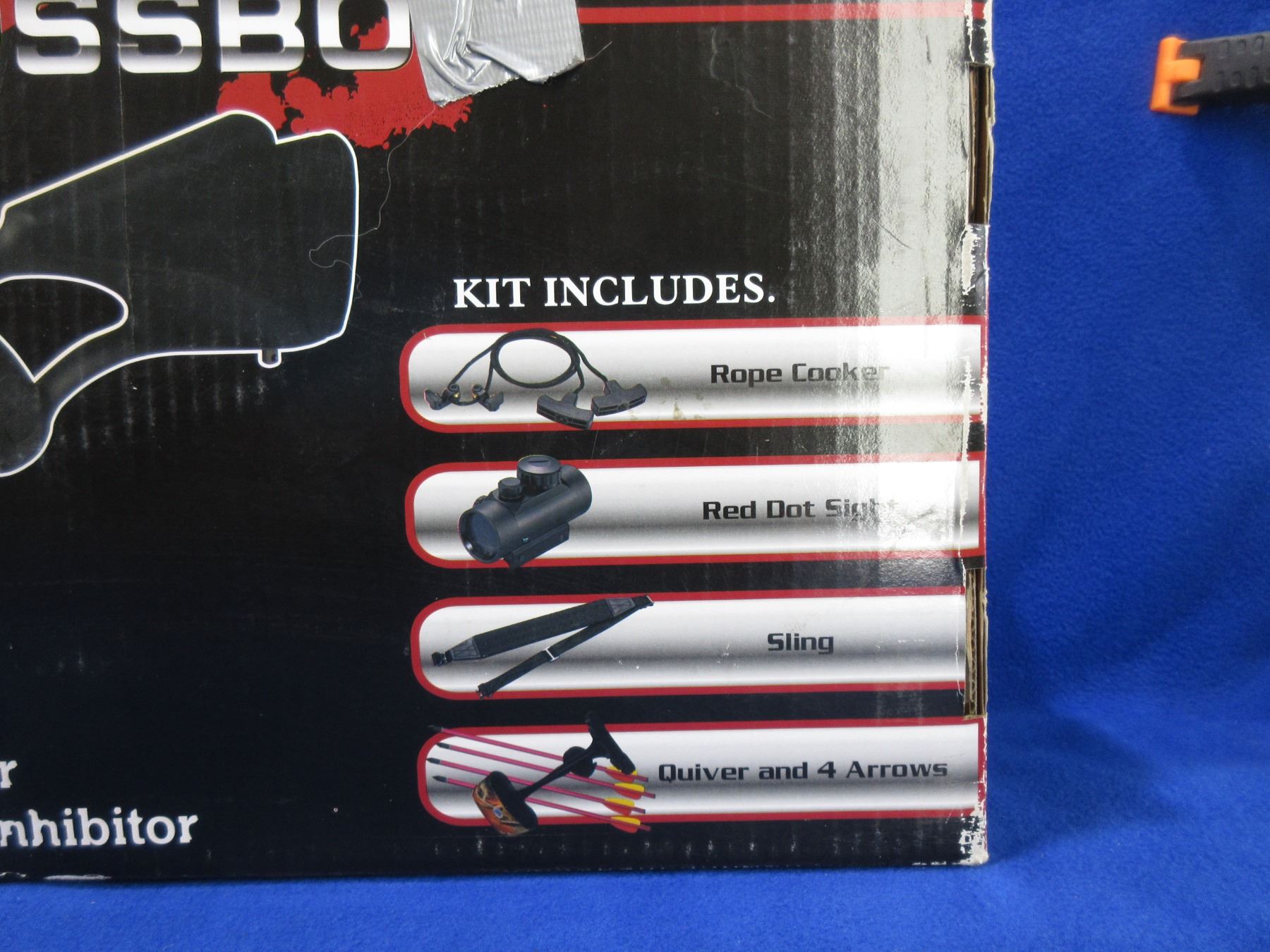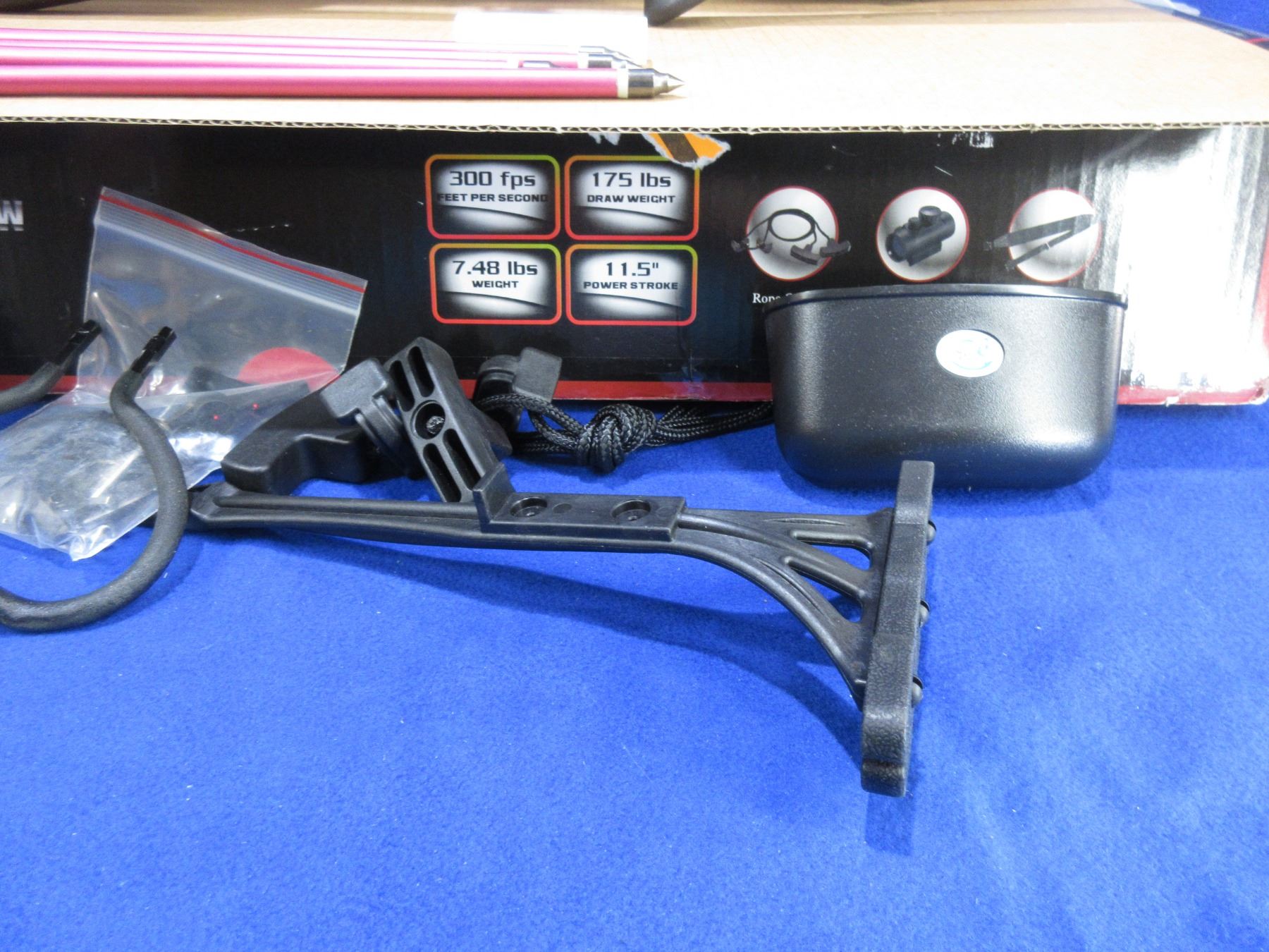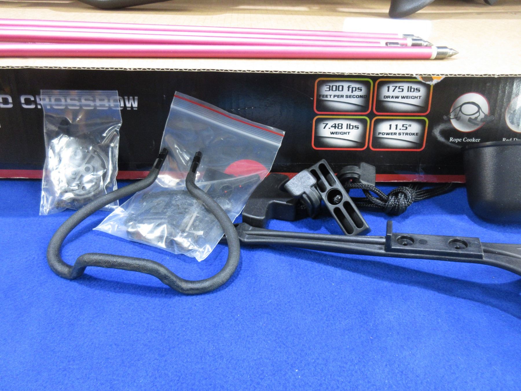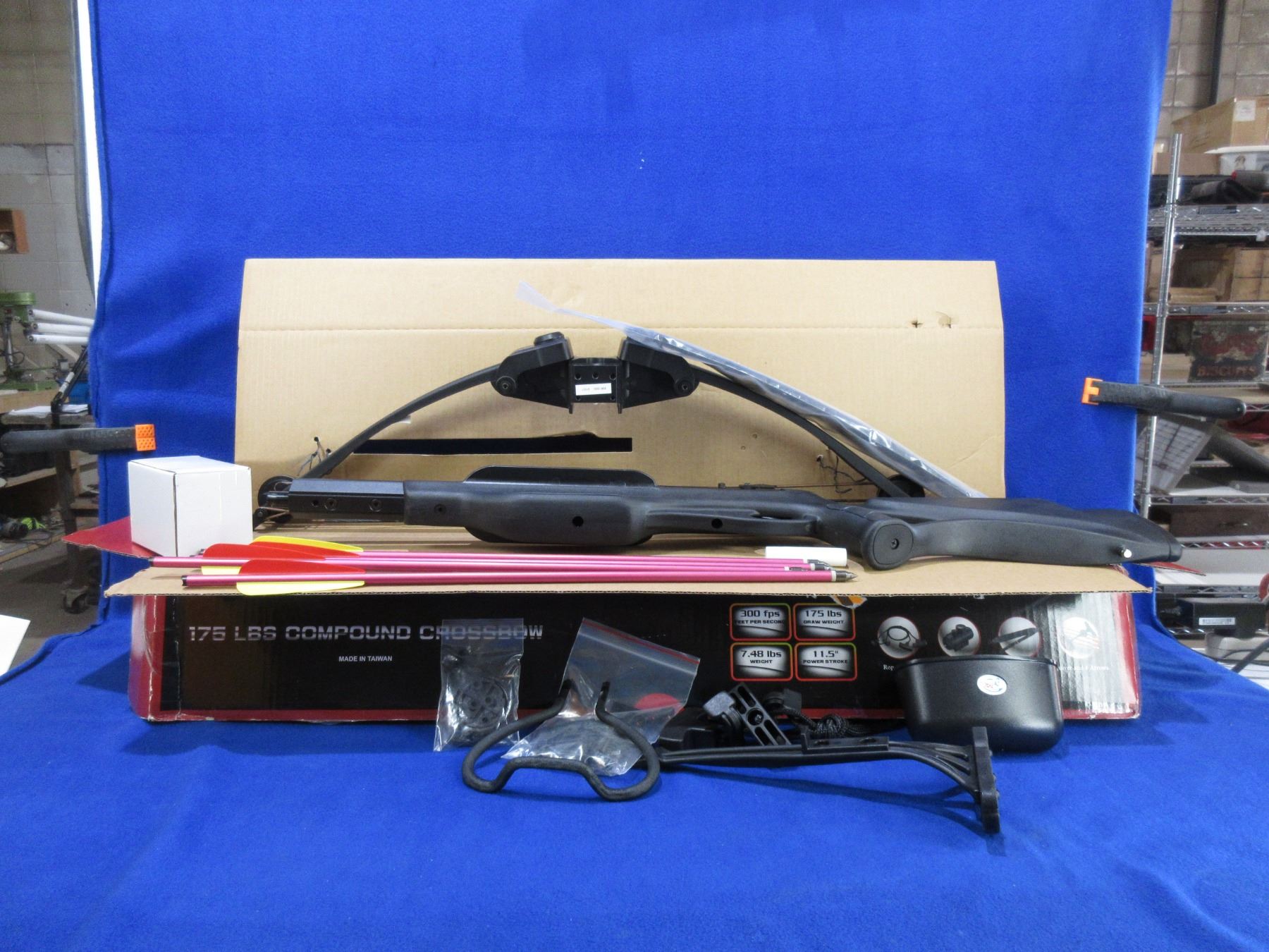 Man Kung MK-300B 175 lbs Compound Crossbow - Appears to be new unassembled - Comes with original box, 4 bolts, quiver, rope cocker, red dot sight, sling and accessories.