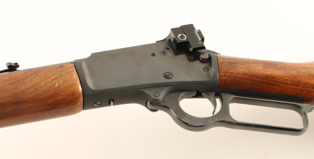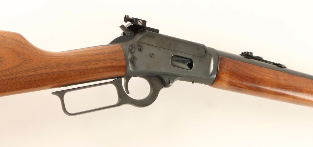 'Classic' Lever action repeating rifle chambered in .25-20 Winchester, circa 1988-1993. Features a blued finish, 22" barrel, 1/2 magazine tube, blade front sight with brass bead, adjustable rear sporting sight with folding leaf, Williams side mounted peep sight, push button safety, smooth trigger, serrated hammer spur, smooth walnut forend and straight grip shoulder stock with factory recoil pad. Rifle retains approximately 96% of it's original blued finish showing light edge wear and some scratches on the barrel and receiver. Action is smooth, bore is excellent and wood stocks are very good with some light dings & scrapes. Condition is very good++. ***Modern Firearm***
