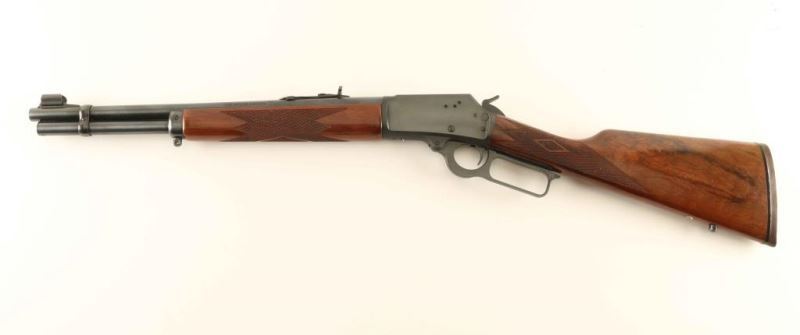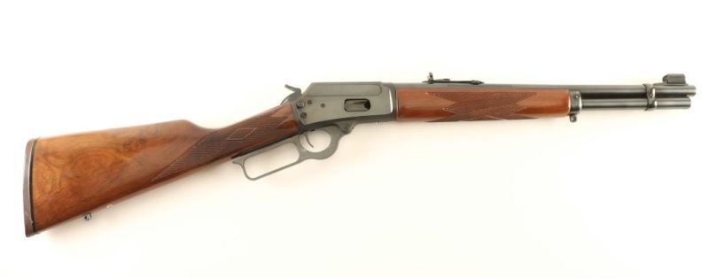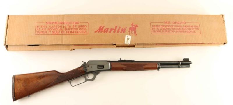 'The Marlin Limited' "JM" marked lever action repeating rifle chambered in .44 Magnum, manufactured circa 1996. Made as a limited edition Talo exclusive with approximately 3,000 produced. Features a blued finish, 16.25" trapper length Micro-Groove barrel, 8 round tubular magazine, hooded blade front sight with bead top, adjustable rear sporting sight, smooth trigger, serrated hammer spur, cross-bolt safety, drilled & taped receiver, swivel studs, fancy checkered walnut forend and straight grip shoulder stock with factory recoil pad. Includes the original factory cardboard box with documents. Rifle retains approximately 99% of it's original finish showing few handling marks and very little wear. Action is smooth, the bore is excellent and the wood stocks are very good with some imperfections along the upper tang. Condition is NRA Excellent in box. ***Modern Firearm***