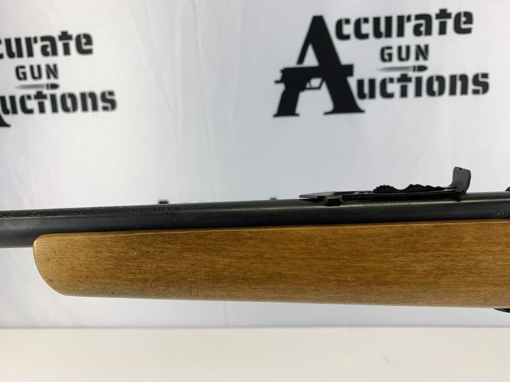 With an overall length of 41" this rifle has a beautiful engraved wood chuck on the stock (these were a special edition for JC Penney), it has a (JM) stamped on the barrel, static ramp front sight, adjustable rear sight, and comes with 1 magazine. Please see photos.