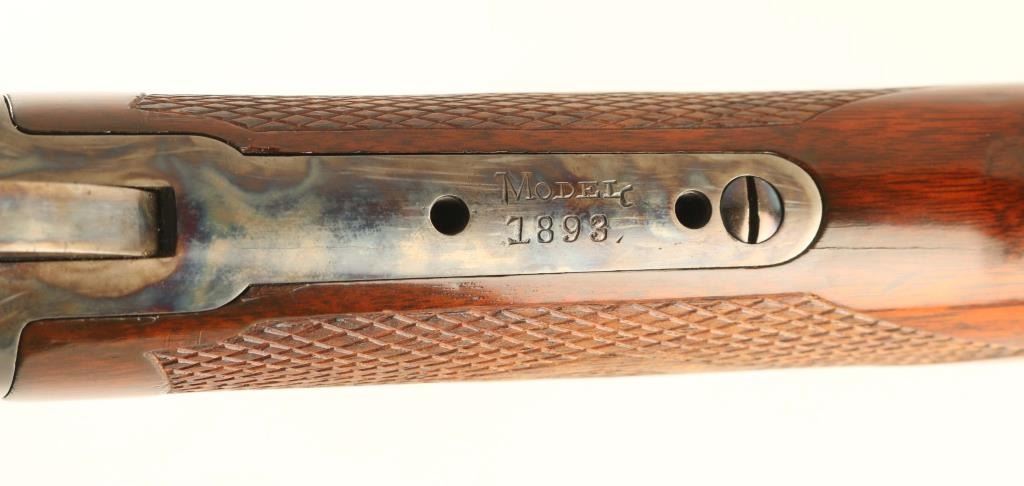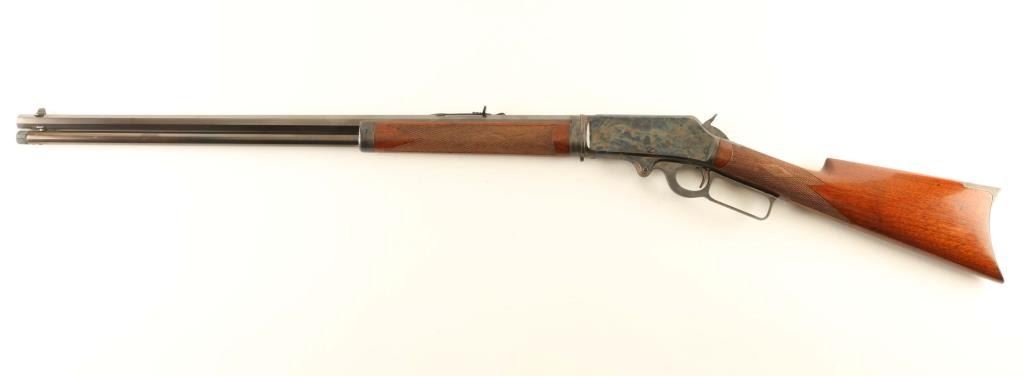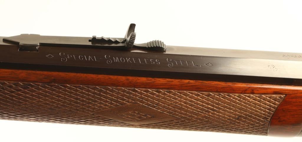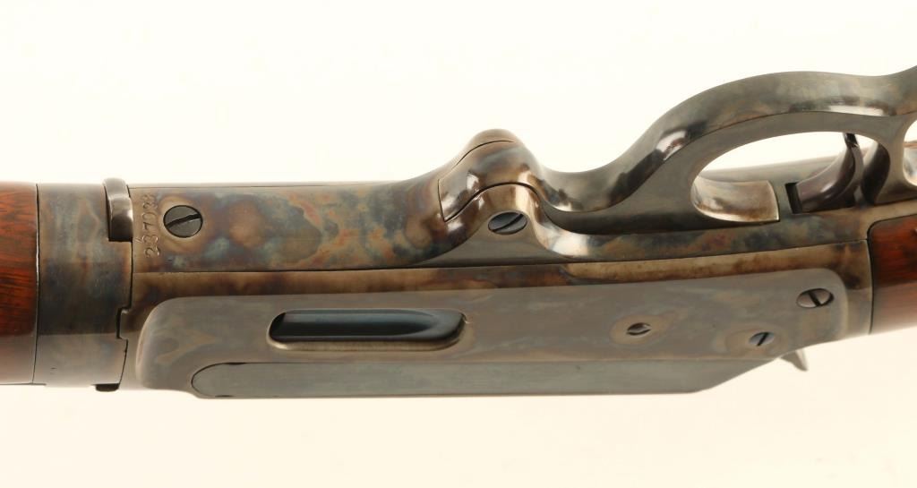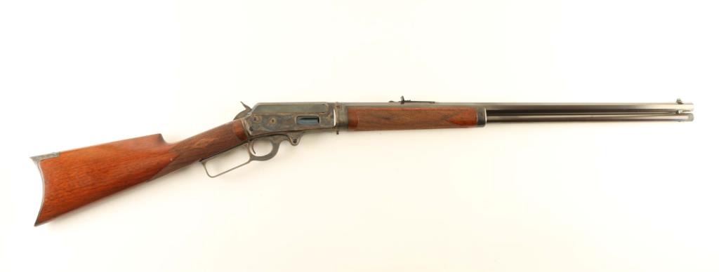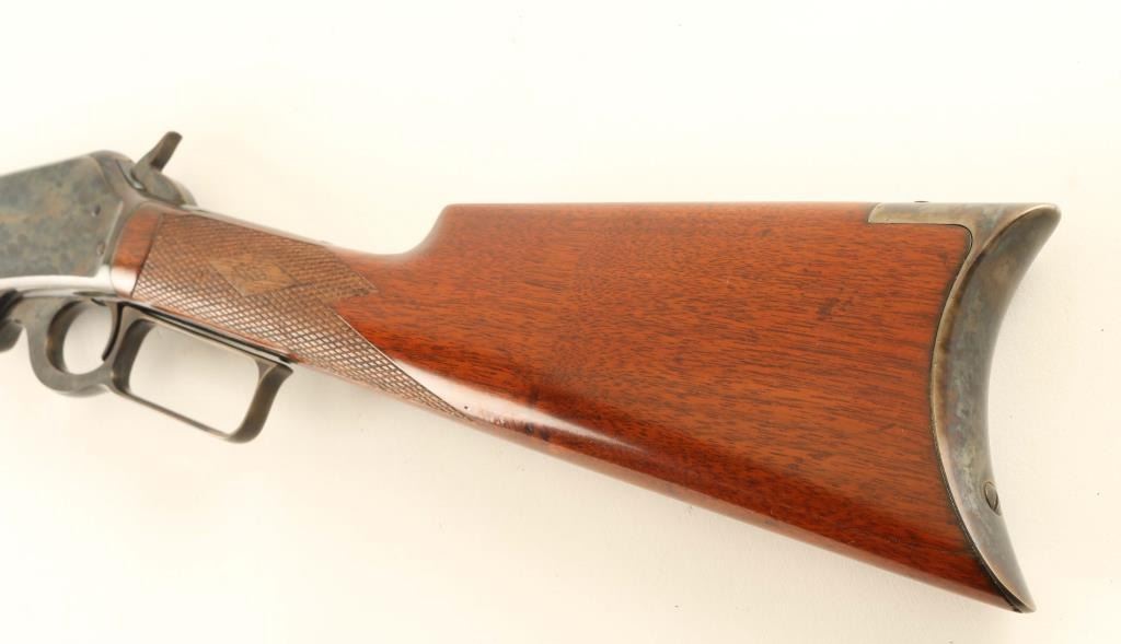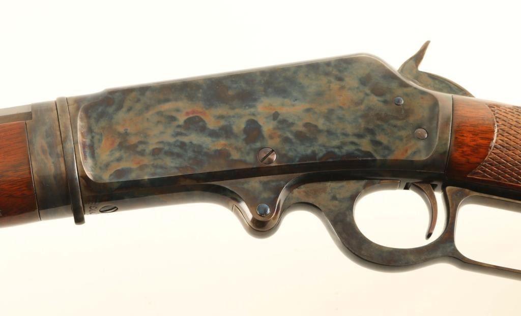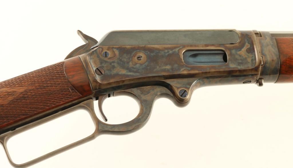 Expertly restored vintage take-down lever action repeating rifle chambered in .30-30 Winchester, manufactured in New Haven, CT circa 1902. Features a blued & case hardened finish with niter blued screws, take-down 26" octagonal barrel, dovetailed blade front sight with bead top, elevation adjustable semi-buckhorn rear sight, full-length tube magazine, smooth trigger, knurled hammer spur, point checkered walnut forend with metal cap and straight grip shoulder stock with crescent metal buttplate & 13 1/16” LOP. Rifle retains approximately 98% of its professional refinish showing light scratches and some scattered pin prick pitting found under the finish on several parts. The barrel & magazine tube display a brown appearance and the case colored parts shows vivid colors. The magazine tube is not well secured near the muzzle and the upper tang shows empty provisions for a sight. Action is sound, the bore is good, markings are very good and the refinished wood stocks are very good with a few hairline cracks. Condition is NRA Very Good as restored. ***C&R Firearm***