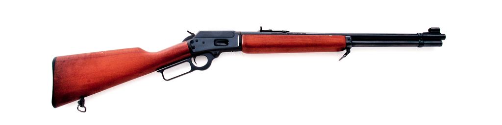 Marlin Model 1894 Lever Action Rifle, #95016738, .44 Rem. mag. or .44 Spec. cal., 20'' ''JM'' marked barrel, dark blue finish, straight grip hardwood stock, black plastic Marlin buttplate, brass bead front sight with hood, sporting elevator rear sight, with quick-release sling swivels. Condition is excellent and retains nearly all of the factory blue finish. Right side of buttstock and edge of forend with a small chip to the finish, otherwise showing only minimal handling marks. Action is crisp, with an excellent bore. Est.: $450-$650. (Modern)