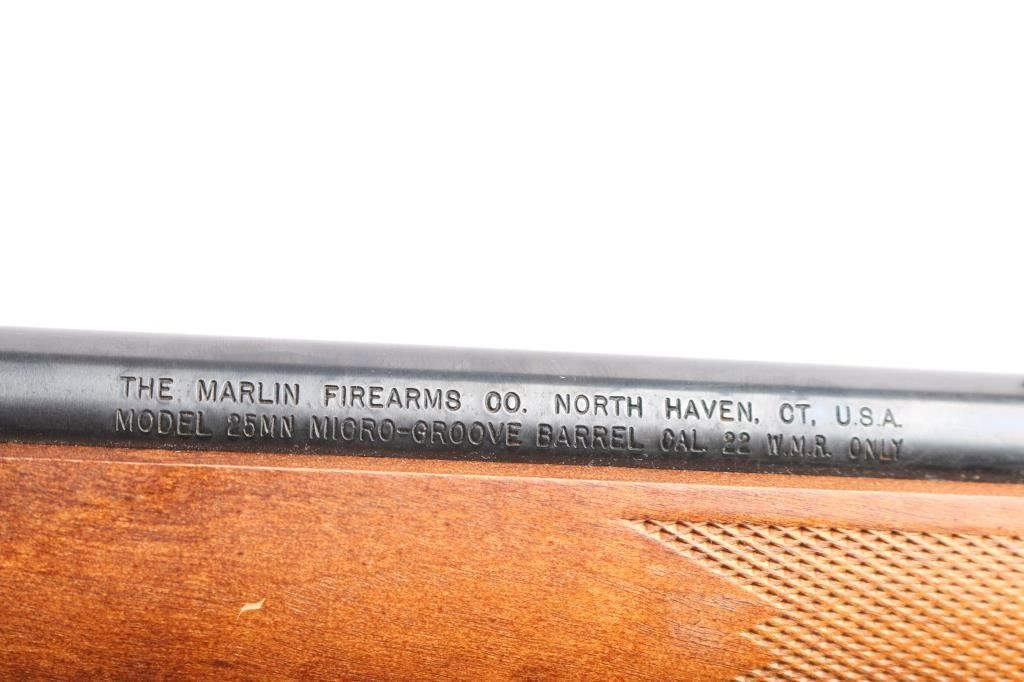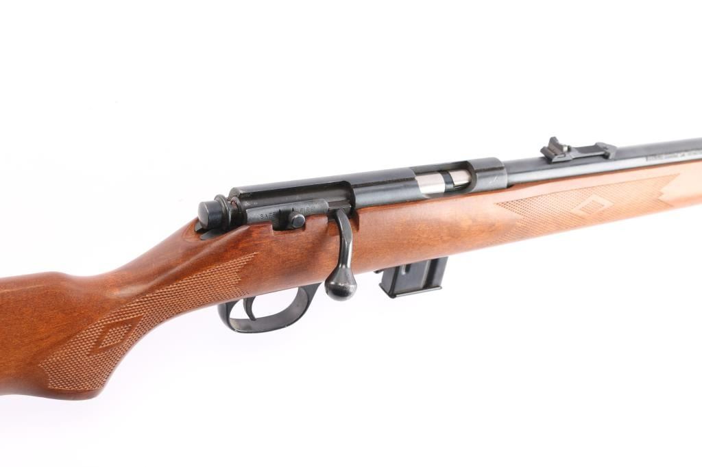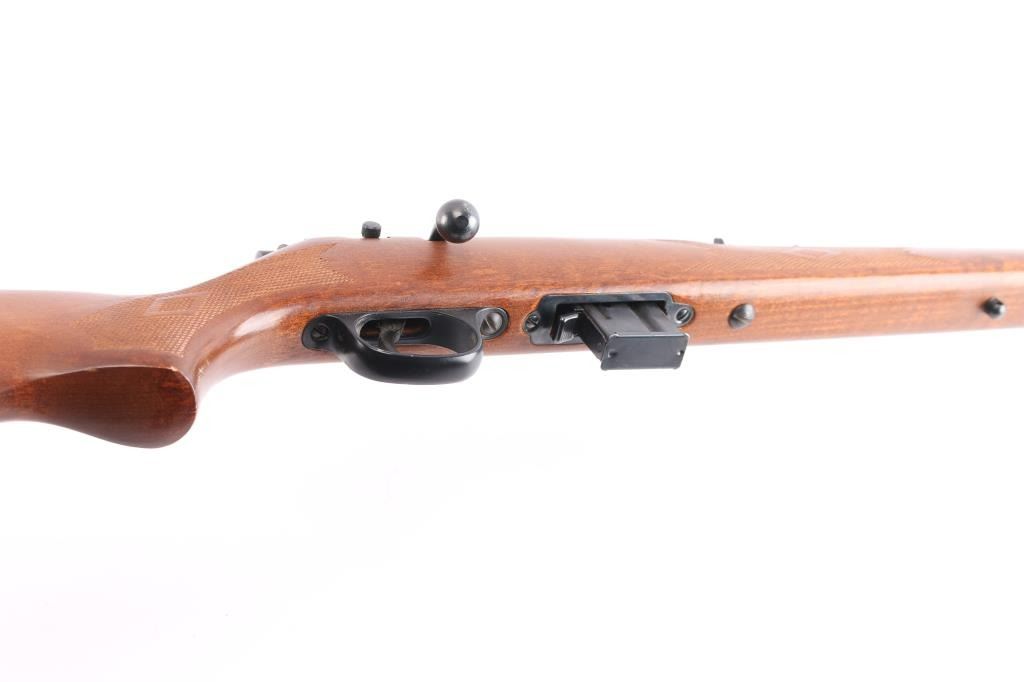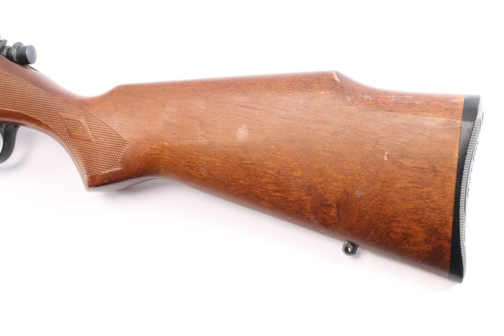 Bolt-Action rimfire chambered in .22 Mag. Fed from a box magazine, 10-rd magazine included 22" "JM" marked barrel with ramped blade front, fully adjustable u notch rear sights, Micro-Groove rifling, optics ready with integral slots on receiver for scope. Smooth walnut stock with high comb, black plastic factory buttplate, sling studs, manual thumb safety. Bore is excellent/bright, action is smooth, wood is very good/sound with minor scratches, blue is about 90% with minor scratches/scuffs.
