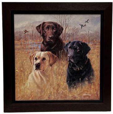 Marsh Masters showcases an adult yellow, chocolate, and black lab in the marsh. A master artist, avid sportsman, and dedicated conservationist, Jim Killen has reaped dozens of awards, including being honored three times as the DU Artist of the Year and once as an All Star Artist. A coating has been added to the art print to create a canvas appearance. A certificate of authenticity is attached to the back of the print.