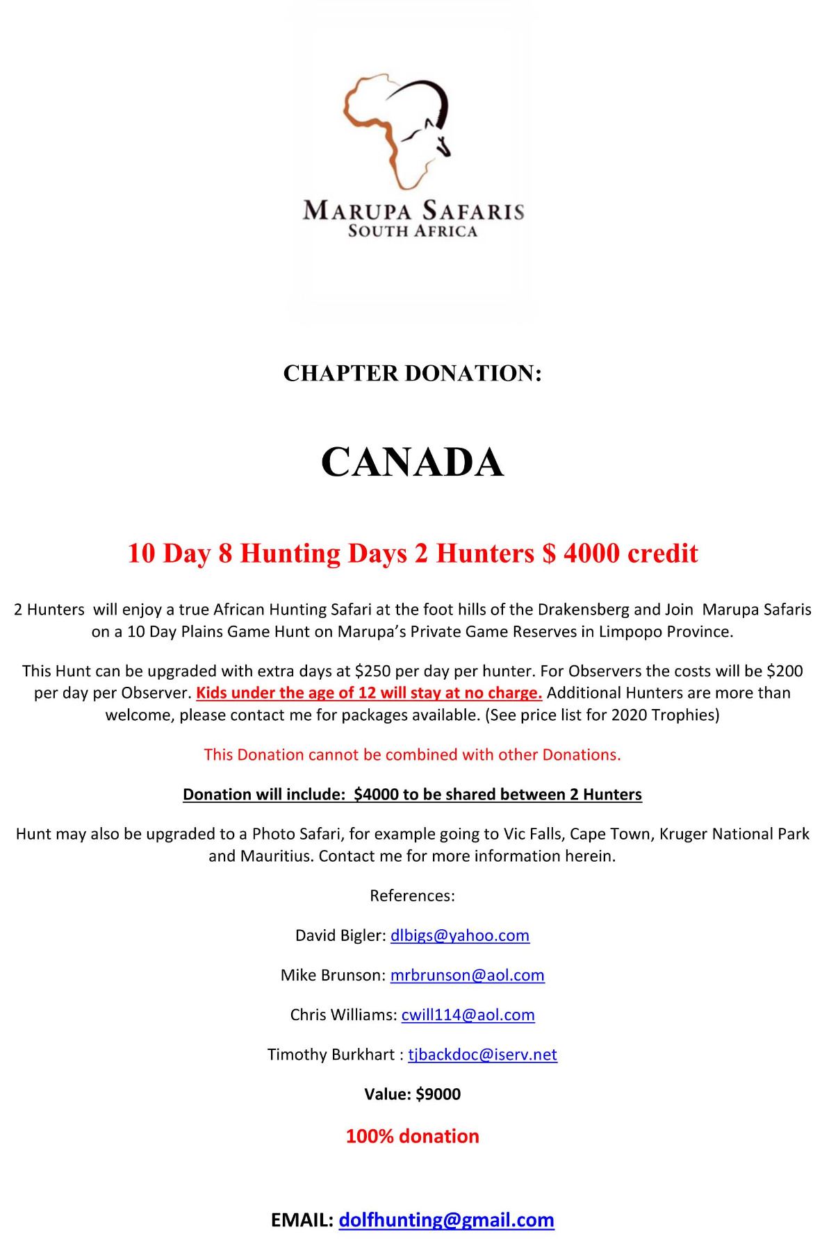 For more information, please contact Dolf’s email at dolfhunting@gmail.com or visit their website at https://www.marupasafaris.com. Please join us in thanking Dolf for this donation and his support of SCI Calgary.
