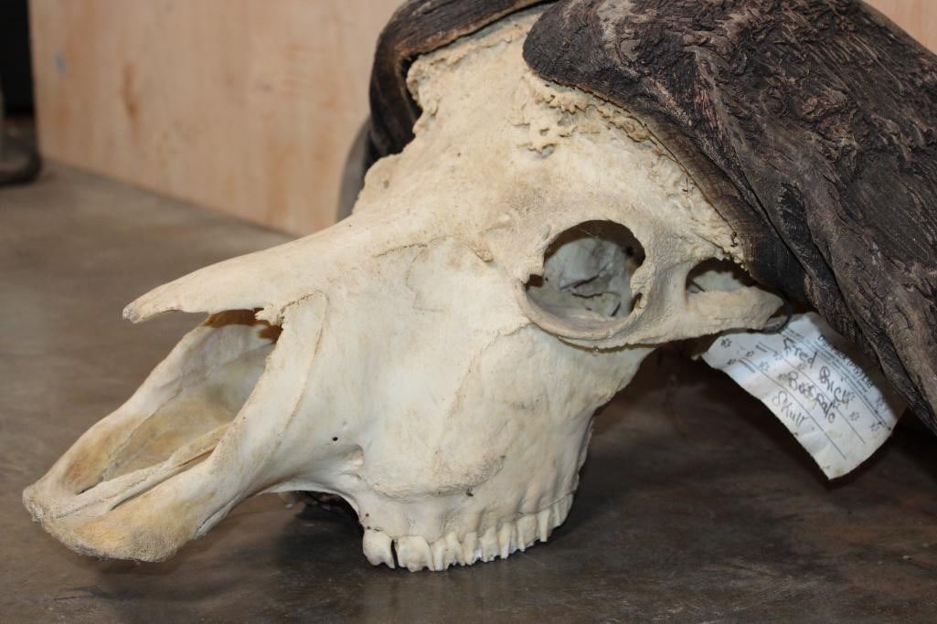 Massive CAPE BUFFALO Skull. It has a 44.5" Spread, 14" Bosses, and All its Teeth. TAXIDERMY SKULLS