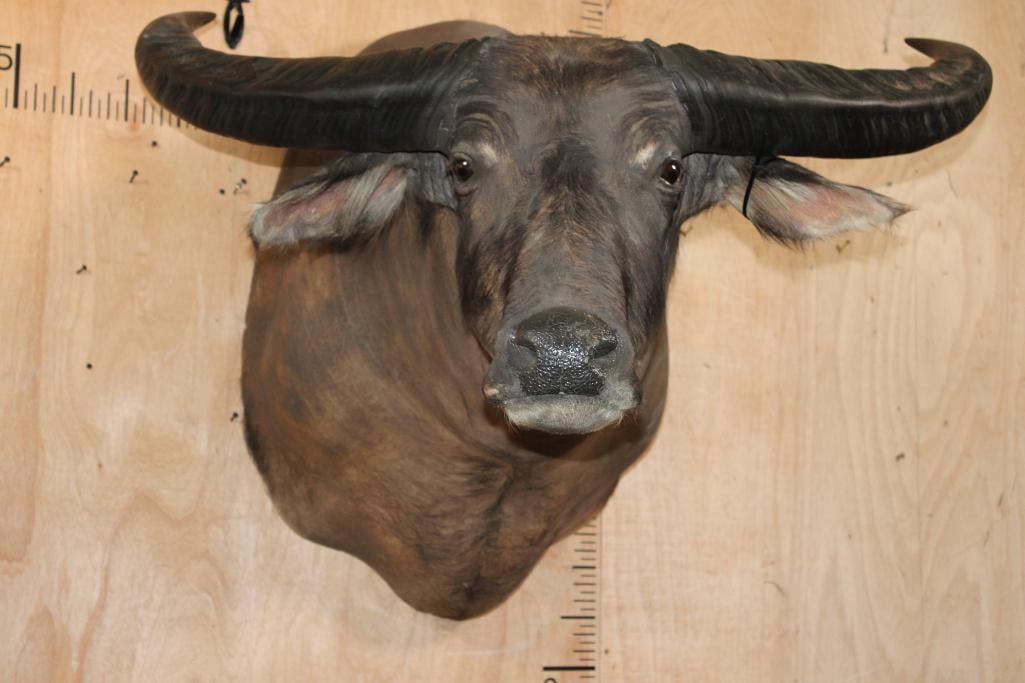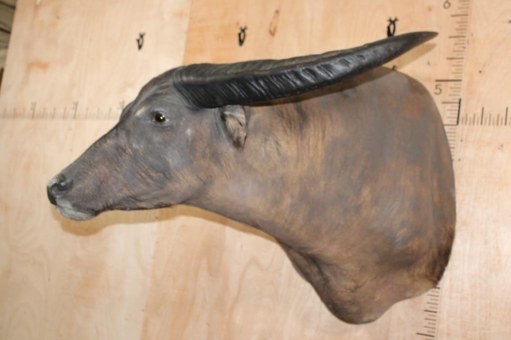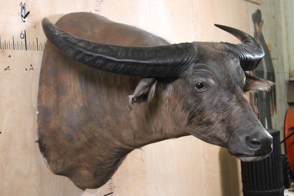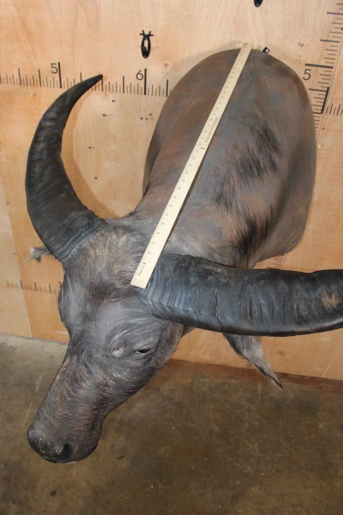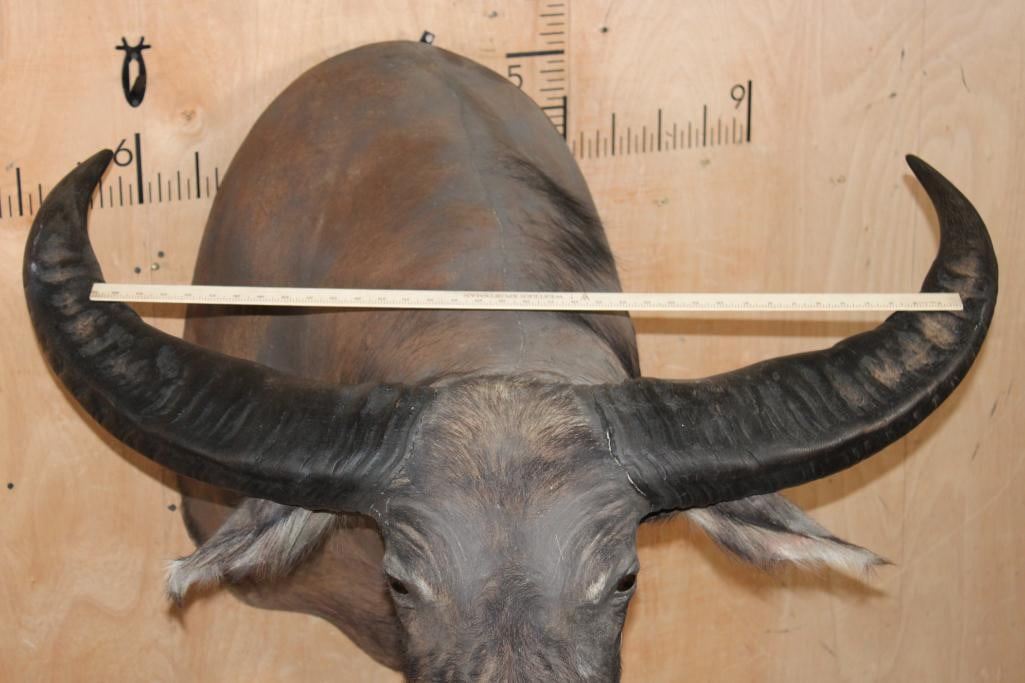 Very Nice, Clean, and Newer WATER BUFFALO Shoulder Mount. It has a 42" Spread and is in Very Good Condition. TAXIDERMY