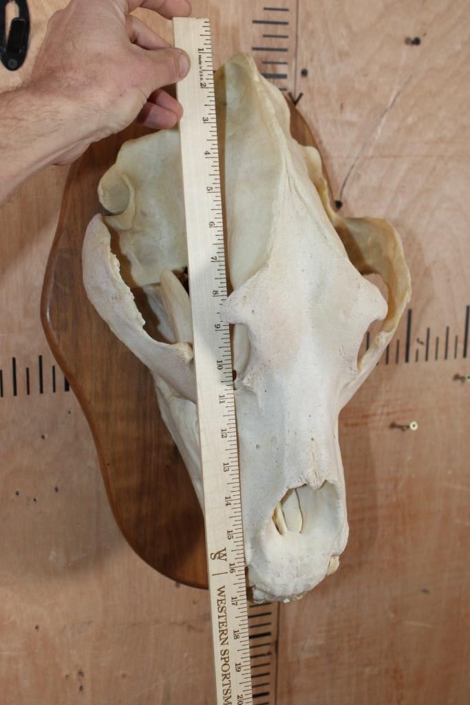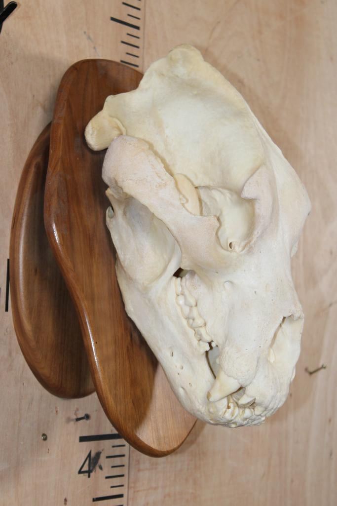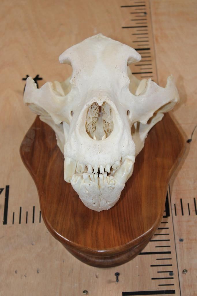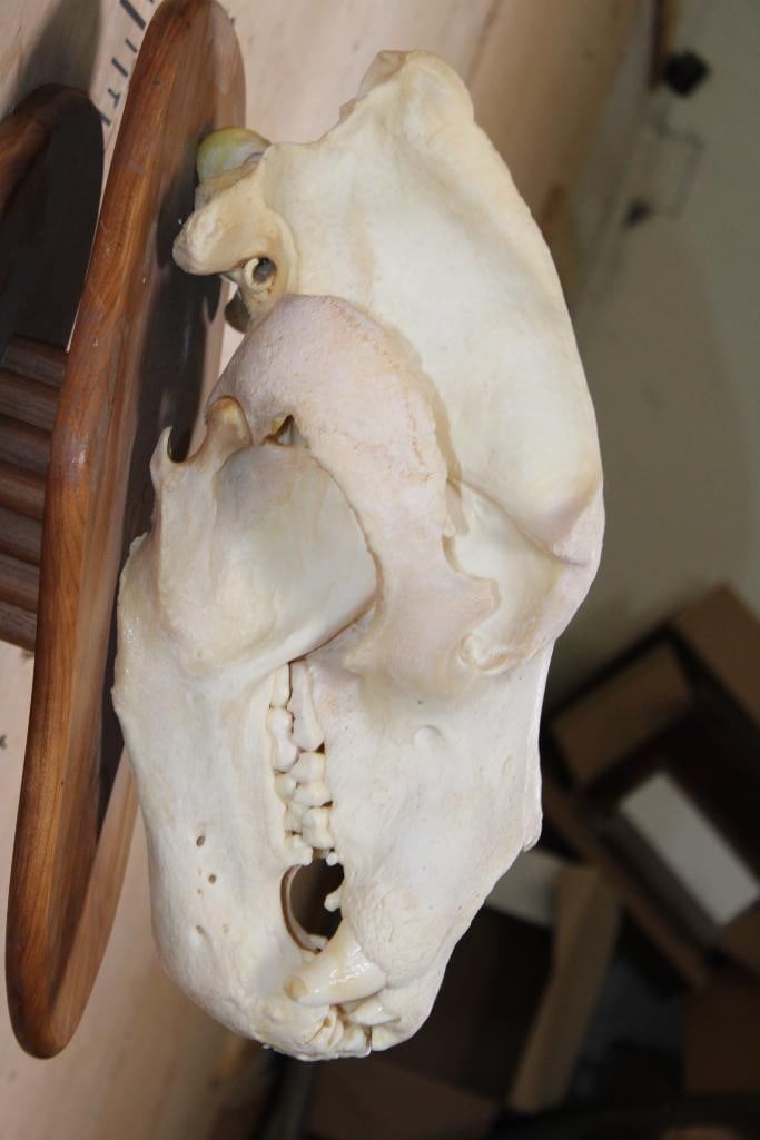 Massive XXL A-Grade BROWN BEAR Skull. It has All of its Teeth (a couple are chipped) and Intact Nasal Turbinates. The Skull measures 17.75" Long x 11" Wide. It is mounted on a Wood Plaque. TAXIDERMY SKULLS