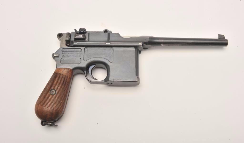 Mauser Broomhandle semi-automatic pistol, 7.65mm caliber, 5.5” barrel, blued finish, wood grips, l