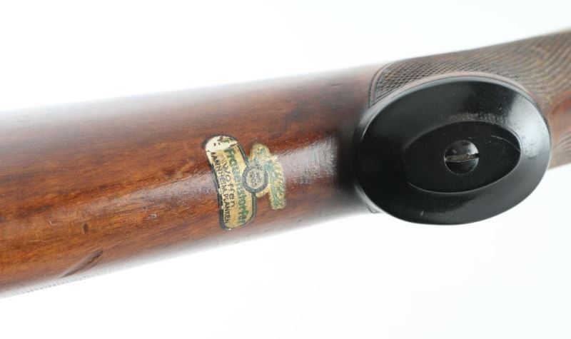 GOOD: Some minor replacement parts; metal smoothly rusted or lightly pitted in places, cleaned or re-blued; principal letters, numerals and design on metal legible; wood refinished, scratched bruised or minor cracks repaired; in good working order.