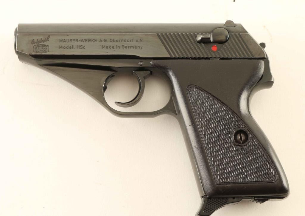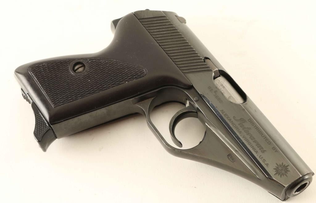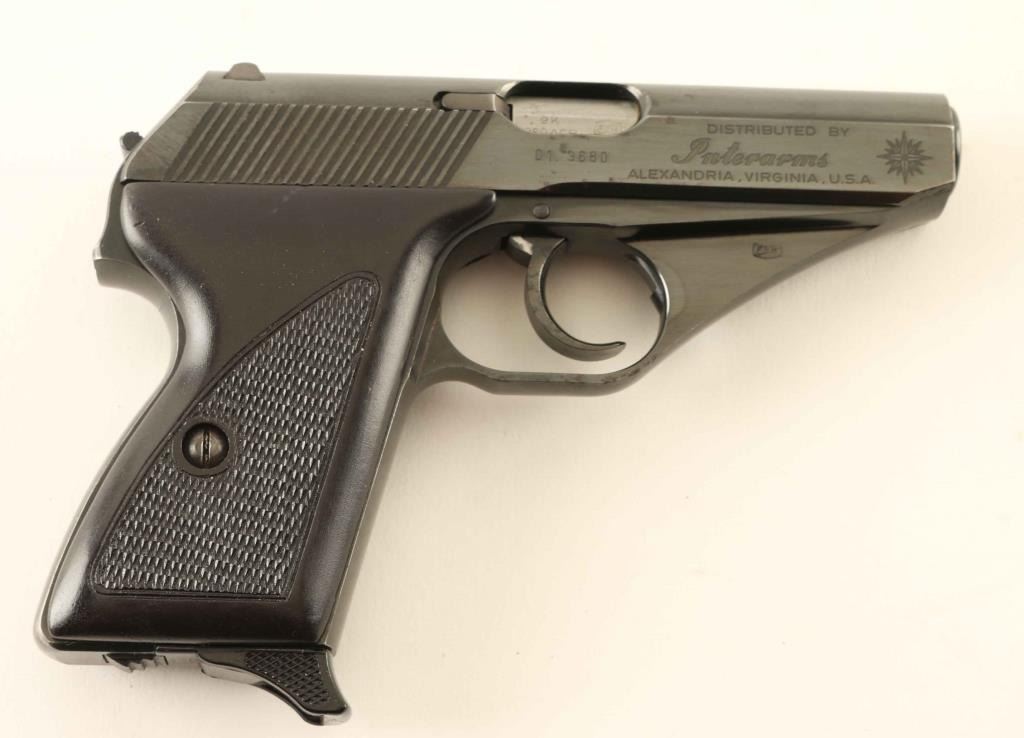 Post-WWII German made double action semi-automatic compact pistol chambered in 9mm Kurz. Imported by Interarms of Alexandria, Virginia with import stamp on the right side of the slide. Features a blued finish, 3.3" barrel, fixed blade front sight, dovetailed rear sight with square notch, smooth trigger, concealed hammer with small exposed spur, thumb safety on the left side of the slide, heel magazine release, 7 round magazine with finger rest floorplate, steel frame and two-piece checkered black synthetic grips. Serial numbers match on the frame, slide and barrel. Pistol exhibits approximately 90% of it's original blued finish showing light holster wear and some scattered pin prick pitting. Action is strong, the bore is pristine and the synthetic grips are good. Condition is NRA Good. ***Modern Firearm***