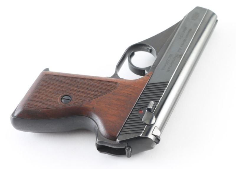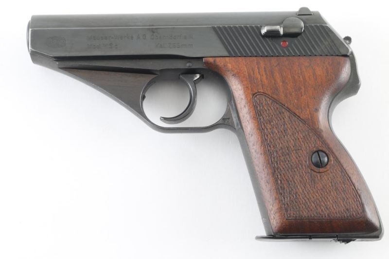 Pistol. Semi-Automatic. 8 rd magazine. Blowback action. 3.4" barrel. 1940 production start. German WW2 issued sidearm. Initially procured for the German navy. This is a Navy issued pistol with the Kreigsmarine Eagle M/6 stamp on the left triggerguard. Eagle/N commercial proof on the right triggerguard. Left slide marked with Mauser logo and "Mauser-Werke A.G. Oberndorf a.N. Mod. HSc Kal. 7.65mm in two lines. "K" stamped on the heel. Bore is very Good/bright. Checkered wood Mauser grips are good with scratches and a 1" dent on the right panel. Blued finish is about 95% with minor edge wear, some scratches. There is a rub on the right slide. There is some slight pin-prick rust spots on the right frame. Magazine floorplate is stamped with the Mauser logo. A nice conditioned Navy. NRA Condition-Near Very Good. C&R Firearm.
