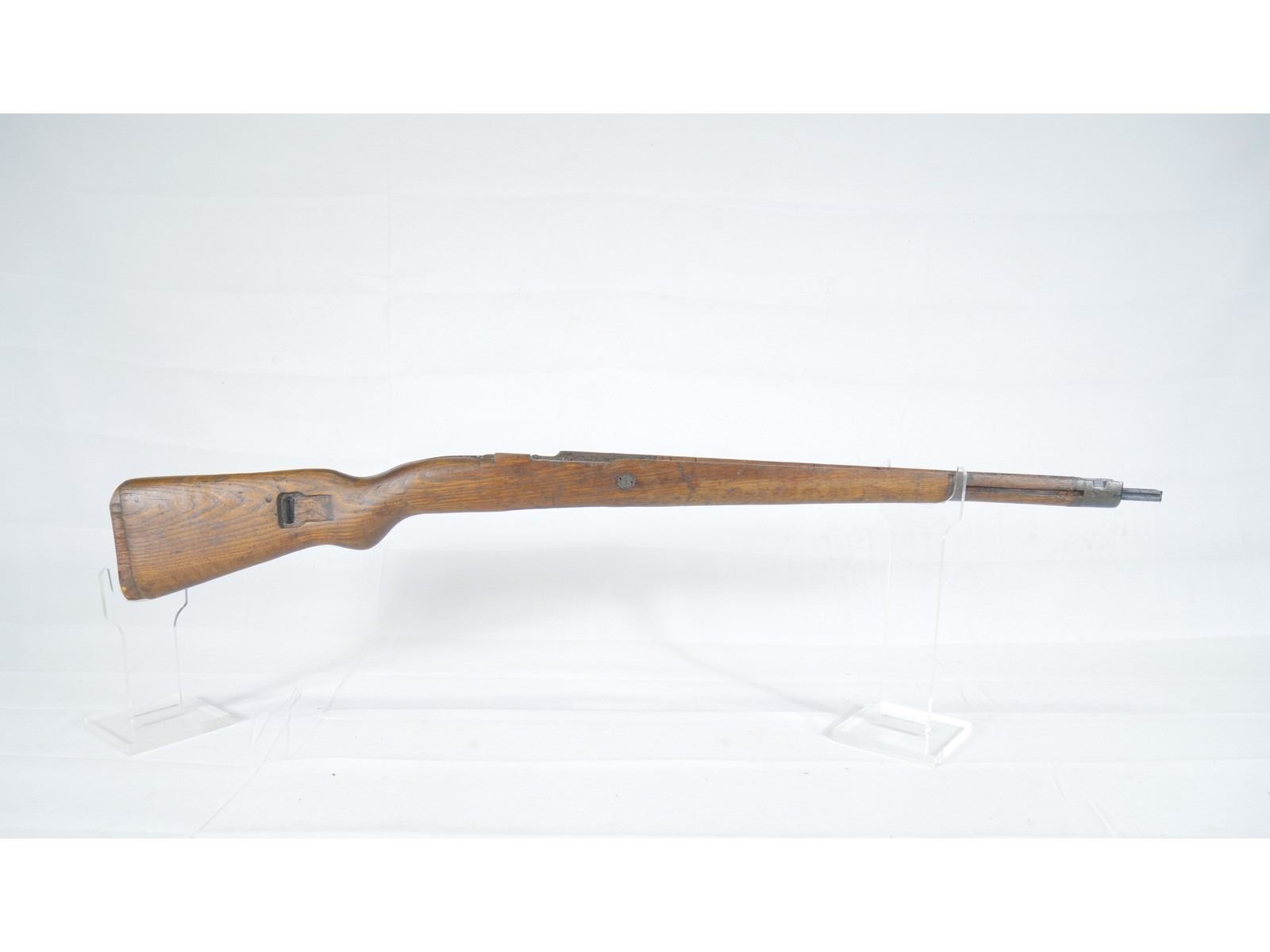 Original wooden stock for K98K rifle. Has cross bolt and metal fore end. See photos.