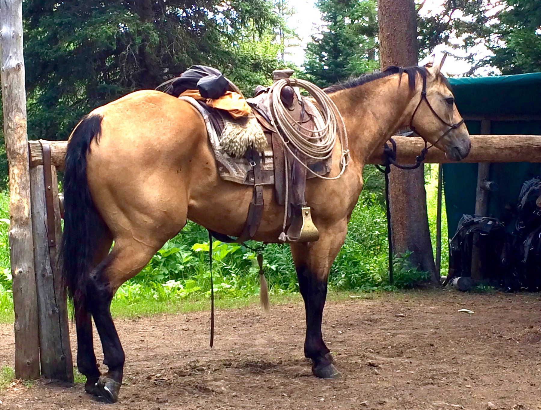 McLite San Tango -2007 AQHA Buckskin Gelding McLite San Tango. Tango is out of Basic's San Tango on the top and Docs Lite Skipper on the bottom. Tango is a 15 hand beautiful buckskin gelding. He has a big hip and pretty head. We have used Tango in our wilderness camps and he is a very gentle trail horse. Tango has a soft mouth and works off leg pressure. He has a nice comfortable walk and is fun to ride. Tango will ride off alone and crosses water and deadfall easily. He is sure-footed and stands to get on. Tango is easy to catch and really likes people. He is also easy to shoe. He is a willing gelding that will work for many levels of riders. Tango gets along well with other horses. Deluxe trail and family horse. Current on wormer, Coggins, and vaccinations. For more info blackmtn2@aol.com or (406)222-7455