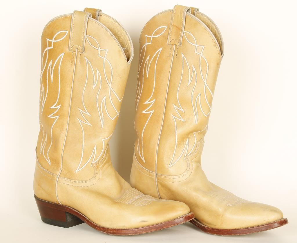 Size 8 1/2 Tan with white accent stitching on the sides.