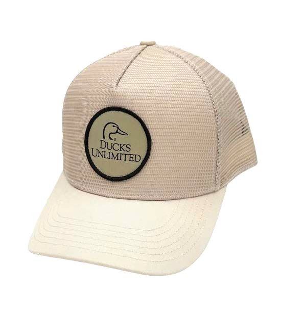 Baseball style cap in a natural color mesh overlay. Ducks Unlimited logo patch. Snap-back closure.