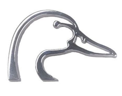 Chrome DU logo metal emblem. Designed with heavy duty adhesive tape on the back. Measures 2" x 3"