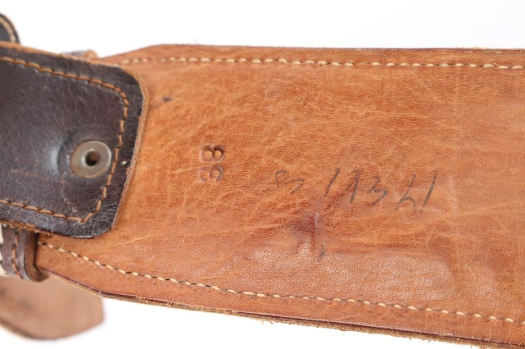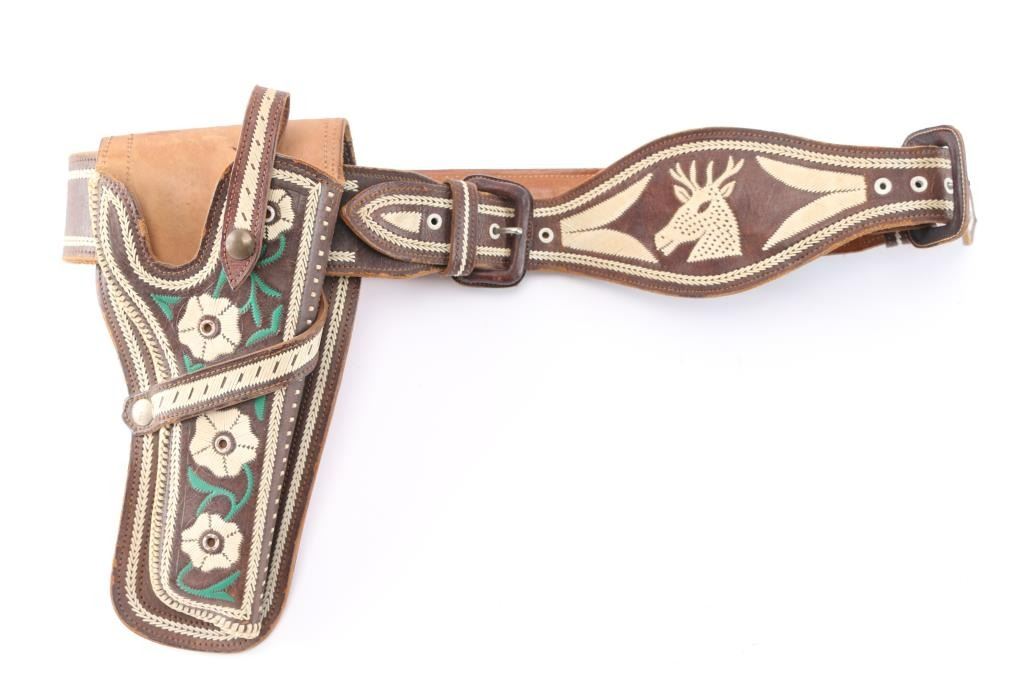 Floral motif on brown leather with dear design. In excellent condition