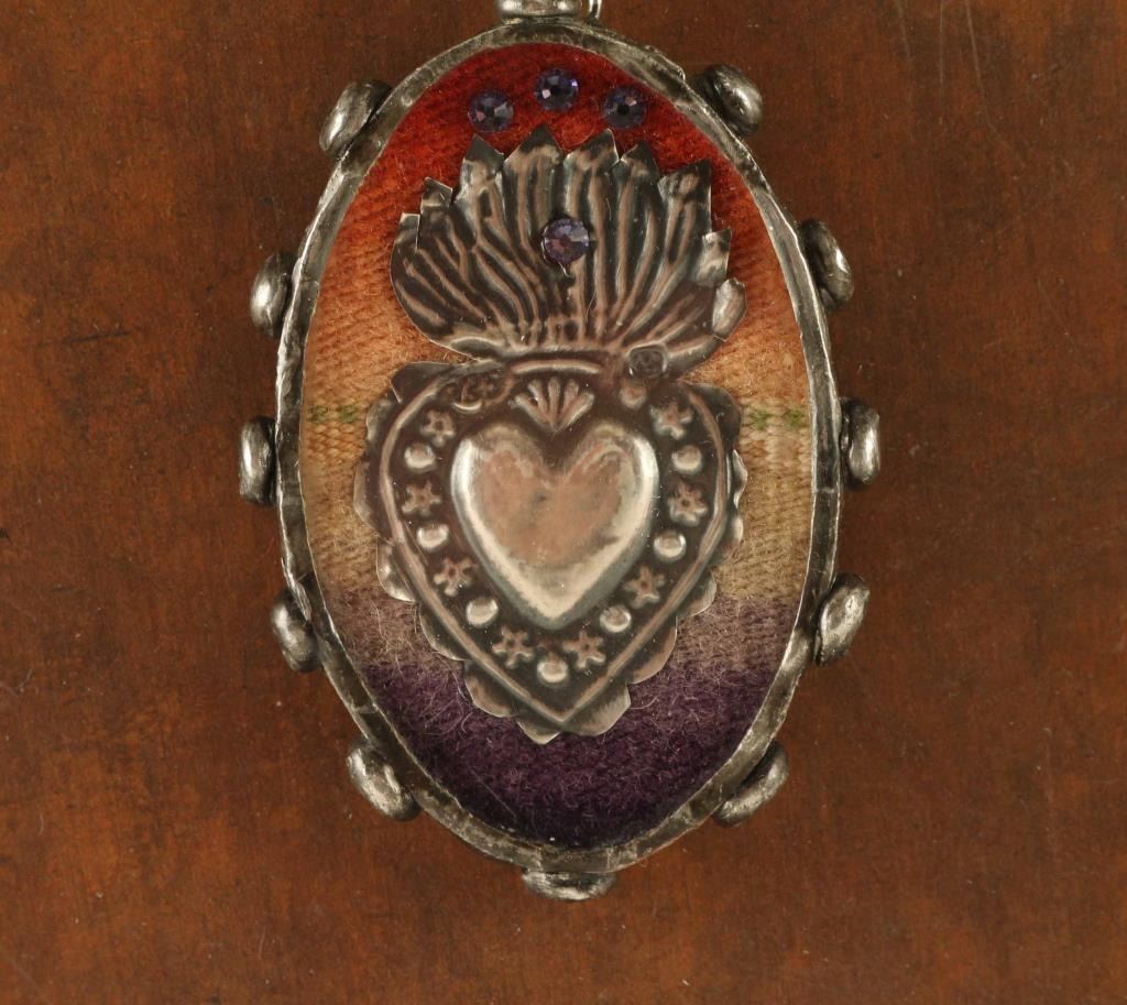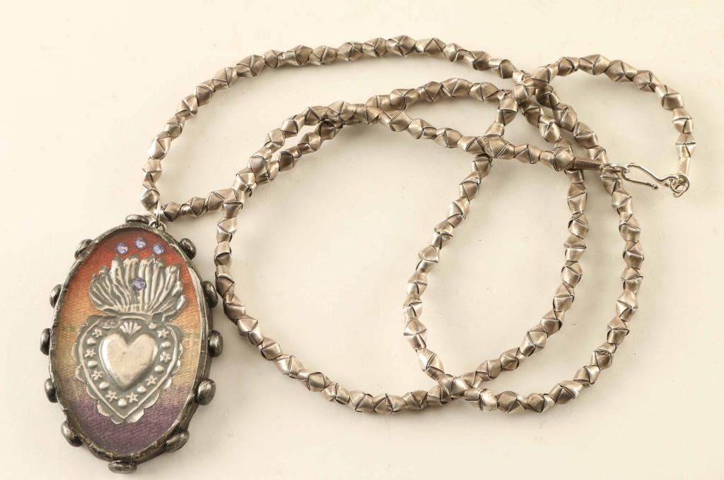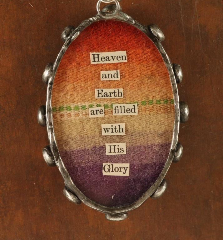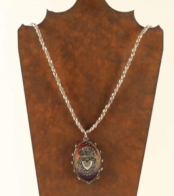 includes (1) Silver colored envelope beaded necklace with a shadow box with sacred heart and on back side reads "Heaven and Earth are filled with His Glory"