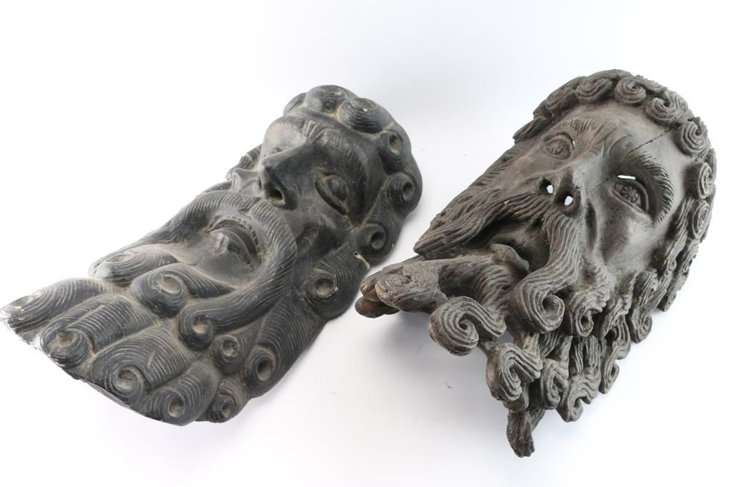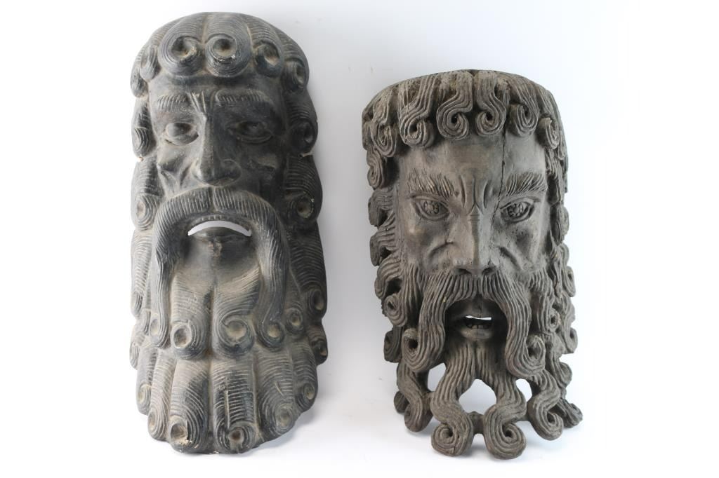 (1) Male bearded figures 21"x11" wired to hang on the wall; (1)Male beard figure 19"x11" weird to hang on the wall.