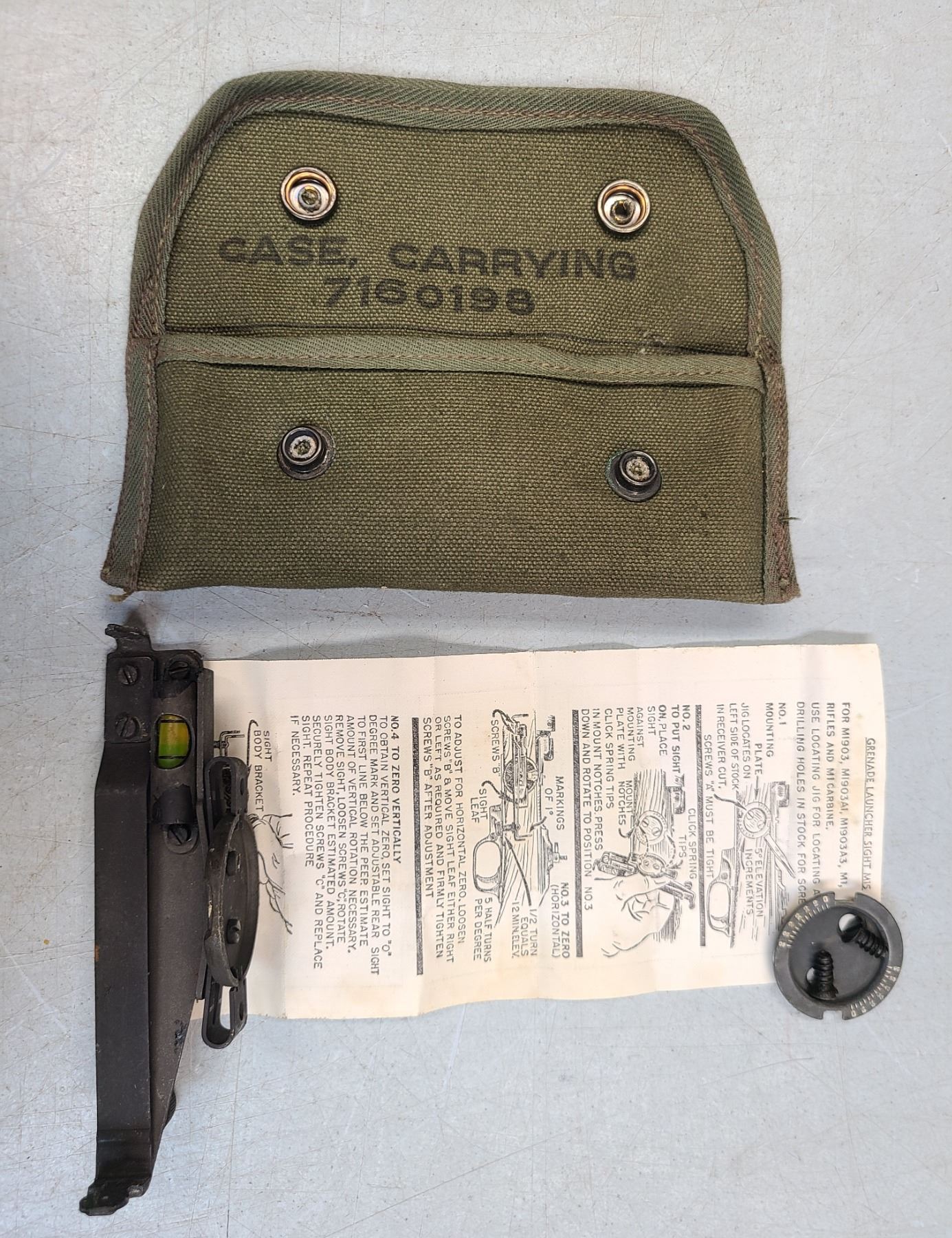 Mi Garand Grenade Sight in Canvas Pouch - Unissued