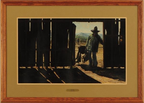 Mike Miller. Framed, gouache. Beautiful painting entitled "Wranglers". 15" tall x 24" wide.