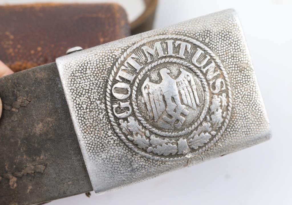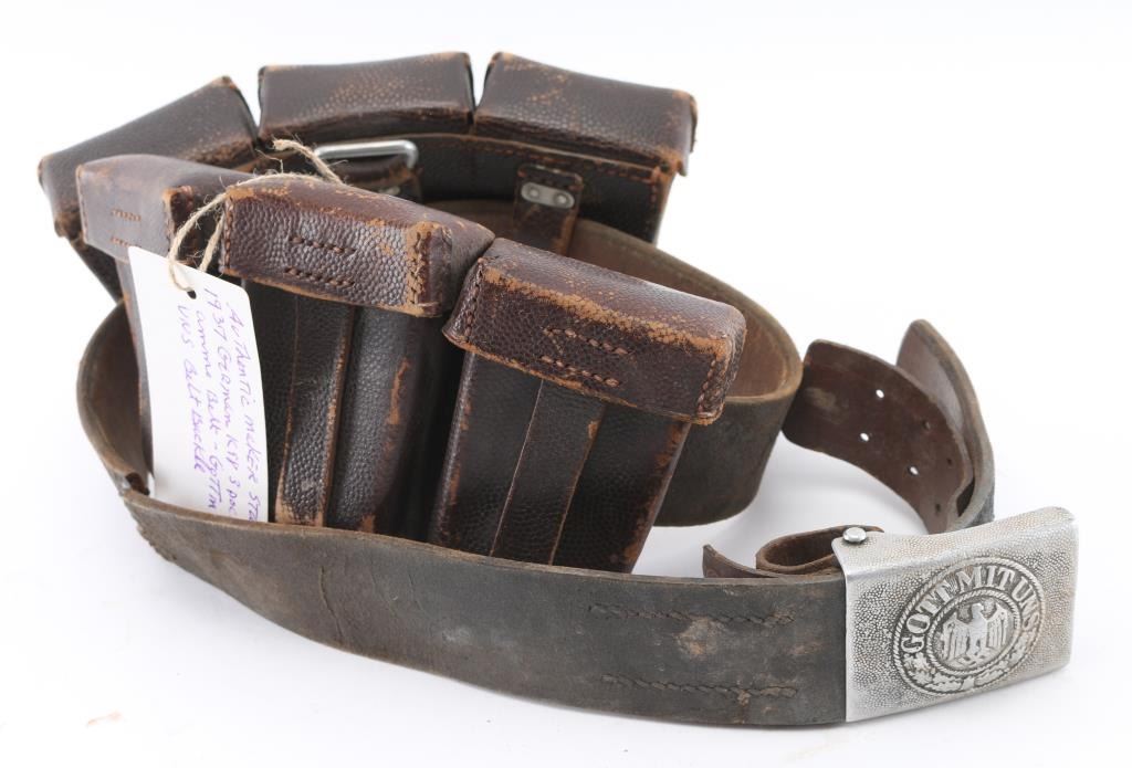 Includes authentic original German Army WWII belt buckle stamped 1937 maker marked, marked "S6" on belt loop , rip in middle section of leather , in poor condition overall with dents and scratches around ammo pouches, also included in this lot is a "Otis cleaning kit in the case made for M4 an M16" (1.) Remington Brass 12 gauge shots, in the box, never been open.
