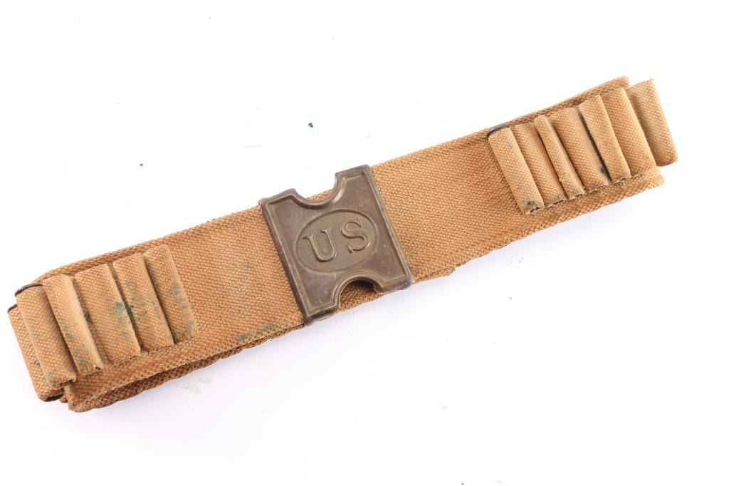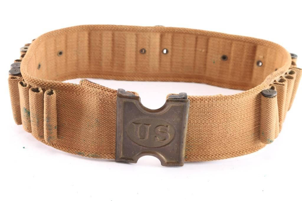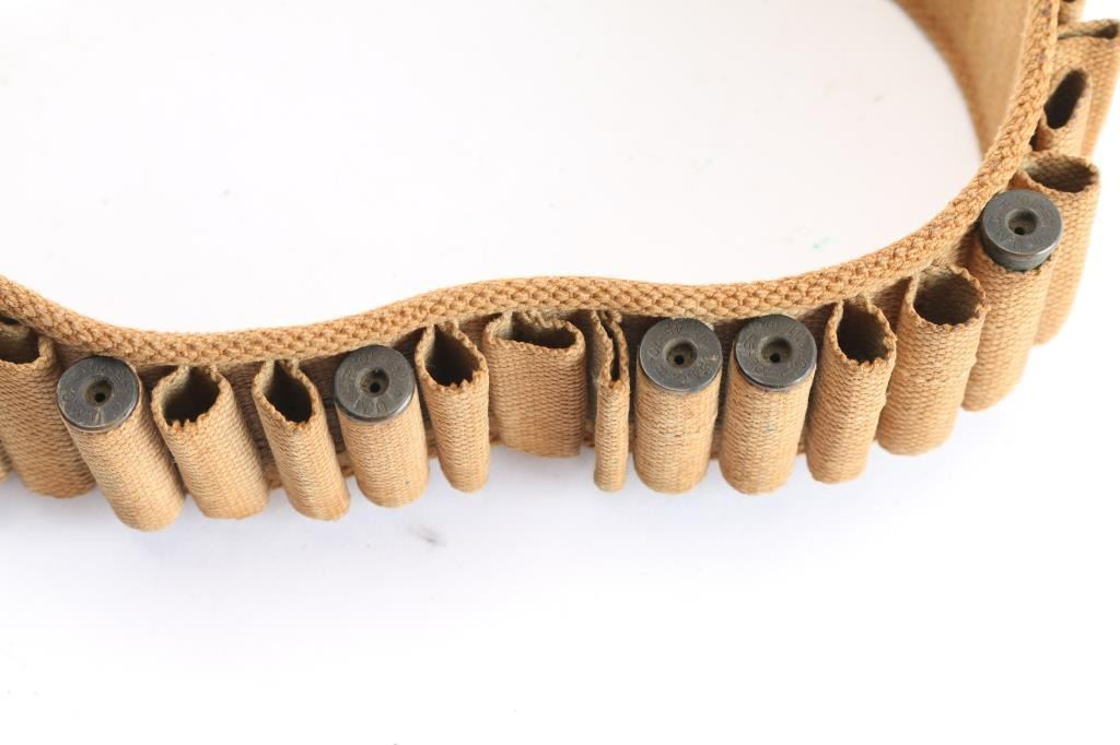 With "H" shaped stamped brass buckle, complete. A few fired cases included. Good to very good overall. Minor fraying and fading. The estate of John Kopec.