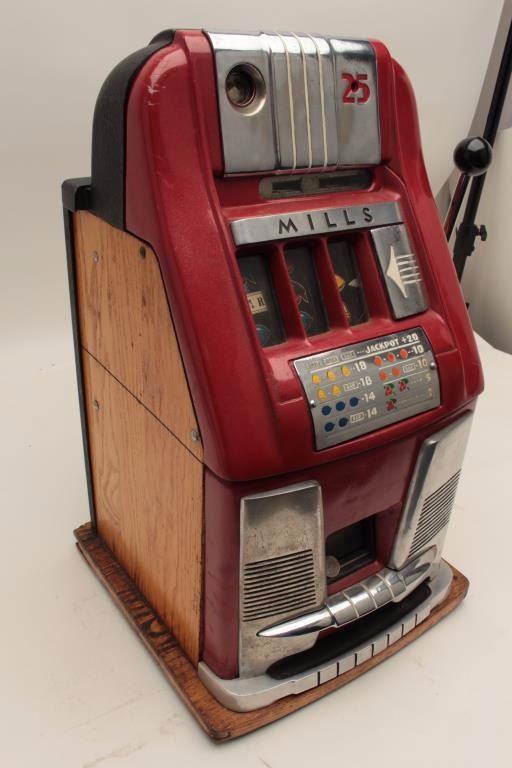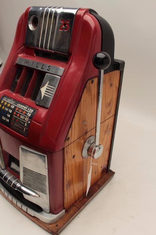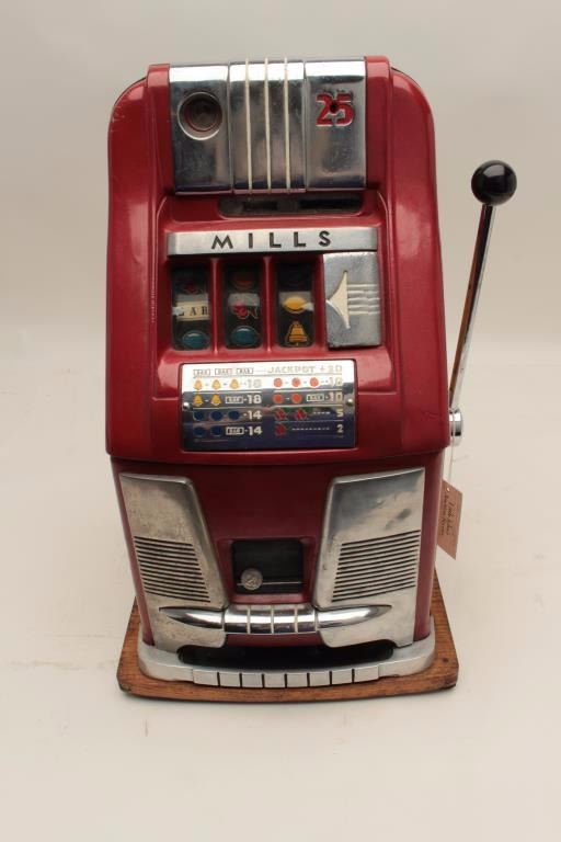 Mills hi-top .25 cent slot machine. Working with cash box. No key. Est.: $900-$1800