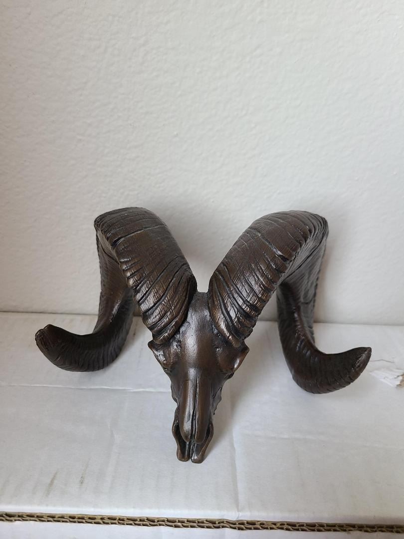 Solid bronze ram skull. Weighs 5.8 lbs and is 4.5" x 6.5" x 4.0". Every sheep hunter will enjoy looking at this beautiful piece of art for many years to come.