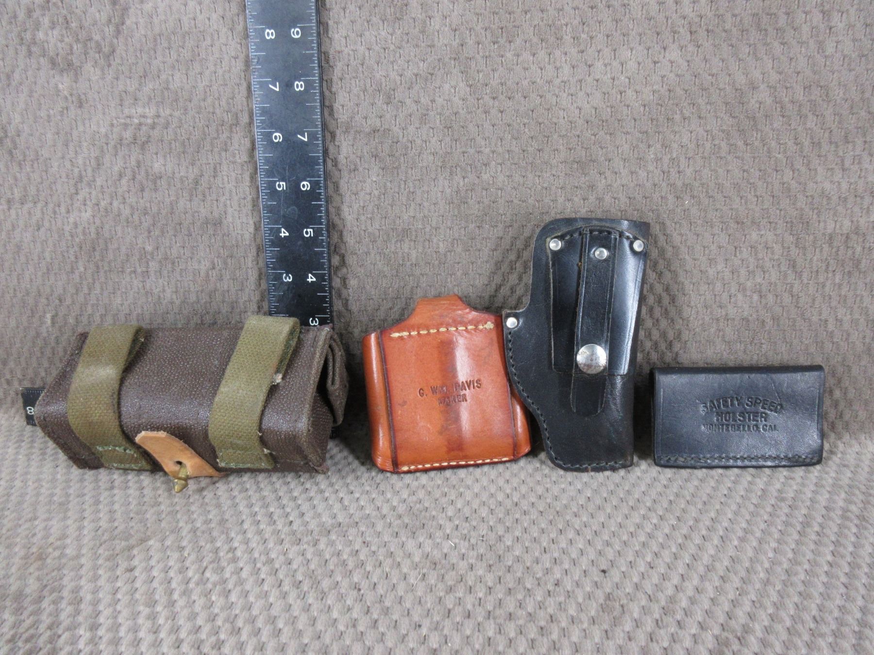 Misc. Leather Items - No. 29 Holster, Safety Speed Holster, G. WM. Davis Cartridge Holder, SKS Cartridge Pouch