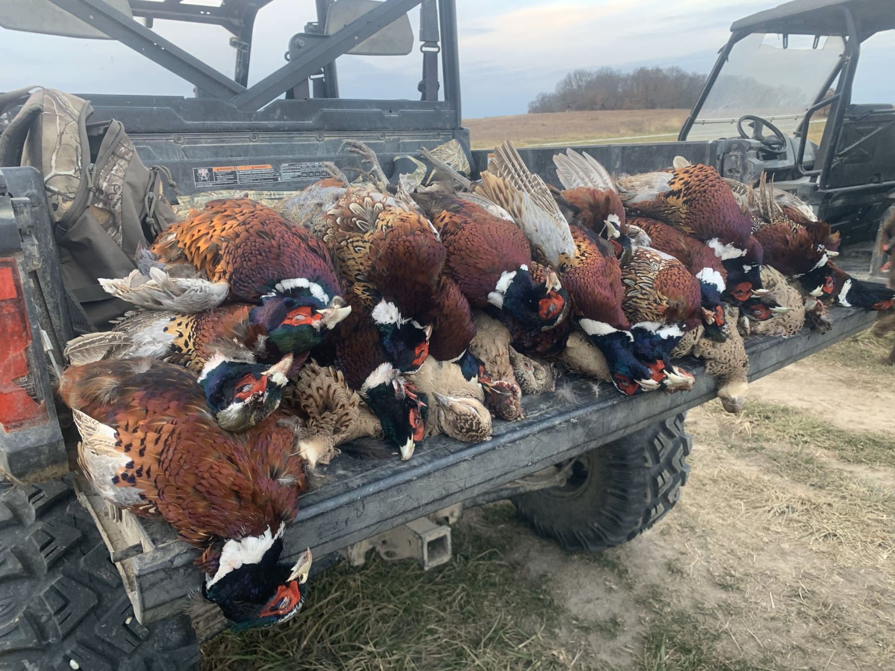 Package includes: Lodging, meals & beverages, professional guides, field prep, upto 5 pheasants per day/hunter, use of dogs, and transportation during trip. Not included: Tips to guides & staff, transportation to/from camp, airport pickup/dropoff, license fee, extra birds, whitetail trophy fee and taxidermy/shipping.