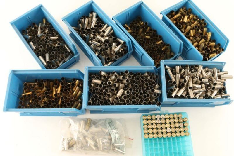Winchester 38 Spl, Win 357 Mag, 357 Sig, 38 Spl, and Federal 38 Spl. Most are in Dillon bins.