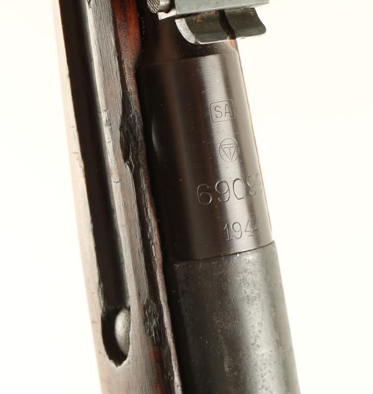 Finnish military bolt action service rifle chambered in 7.62x53Rmm, circa 1944. Featured a blued finish, Tikka marked 28.7" tapered barrel, hooded post front sight, graduated rear sight to 2,000 meters, internal box magazine, straight bolt handle, two barrel bands, smooth wood handguard and straight grip shoulder stock with metal buttplate. Matching serial numbers on barrel and bolt. Import marks on barrel. Finish is approximately 82% intact with light pitting on the receiver. Action functions well, bore is excellent and wood stock is good. Condition is good+. ***C&R Firearm*** ***Modern Firearm***