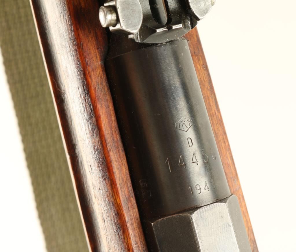 Arsenal reconditioned Finnish military bolt action service rifle chambered in 7.62x54R, circa 1941. Features a blued finish, 31.6" barrel, blade front sight, ladder rear sight, 5 round internal box magazine, hex receiver, cleaning rod, canvas sling, VKT marking, straight bolt handle, smooth wood handguard and finger-jointed full length straight grip shoulder stock with metal buttplate. Matching serial numbers on barrel & receiver. Import marks on barrel. Finish is approximately 90% intact with the magazine showing pitting and heavy wear. Action performs well, bore is excellent and wood stock is good+. Condition is good to very good. ***C&R Firearm*** ***Modern Firearm***