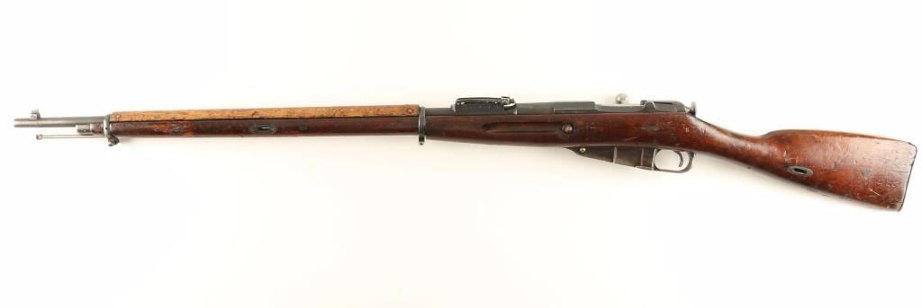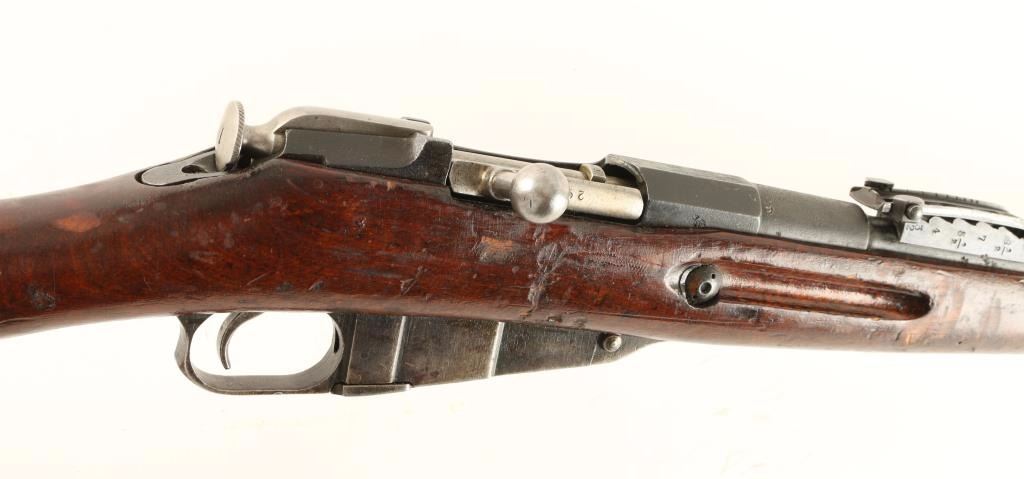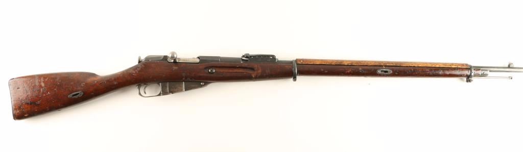 Arsenal reconditioned Russian bolt action service rifle chambered in 7.62x54R, circa 1906. Features a blued finish, 31.6" barrel, blade front sight, ladder rear sight, 5 round internal box magazine, hex receiver, cleaning rod, Tula Imperial marking, straight bolt handle, smooth wood handguard and full length straight grip shoulder stock with metal buttplate. Matching serial numbers on barrel, bolt & receiver. Import marks on barrel. Finish is approximately 60% intact overall with pin prick pitting on the barrel and receiver. Action performs well, bore is dark with good rifling and wood stock is good. Condition is good. ***C&R Firearm*** ***Modern Firearm***