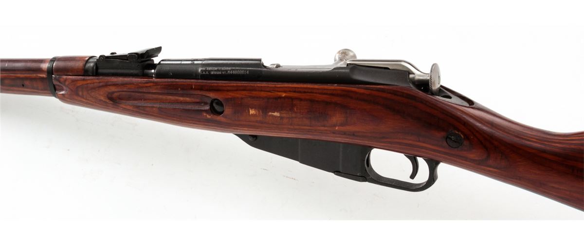 Mosin-Nagant M44 Bolt Action Carbine, #M44088814, 7.62x54R cal., 20-1/2'' batrel, blue finish, laminated hardwood stock, with light importation marking to left side of chamber area. Originally mfg'd in 1945, but arsenal rebuilt post-WWII. Condition is excellent as arsenal overhauled. Stock with light scuffs. Crisp action, mirror bright bore. Est.; $150-$300. (C&R)