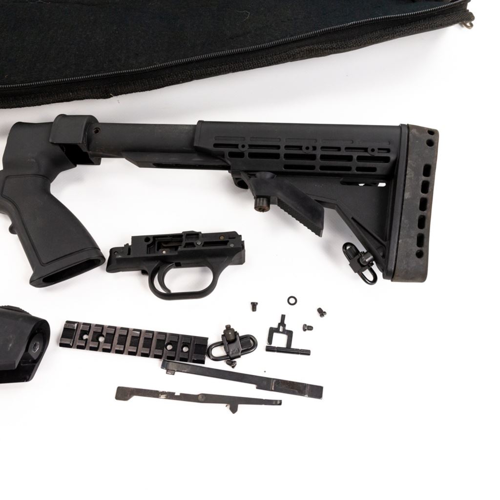 Disassembled Mossberg 500 12g Project Shotgun in good condition. It appears all parts are there. Pistol grip "AR" stock. S/N:U346777 NOTES AUCTIONEER: CANNOT SELL TO ILLINOIS RESIDENTS!!