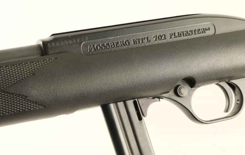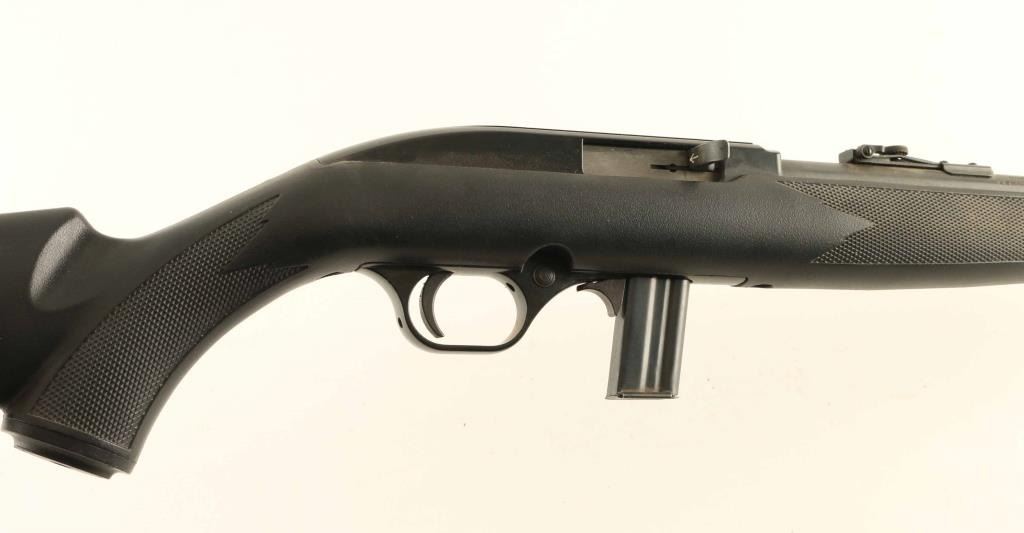 Mossberg semi-auto rimfire rifle chambered in .22LR. 18" blued barrel with black synthetic stock. Barrel shows some rust in a couple of spots but no visible pitting. Stock has minor scuffing. Comes with 2 mags. Condition is NRA Good ***Modern Firearm***