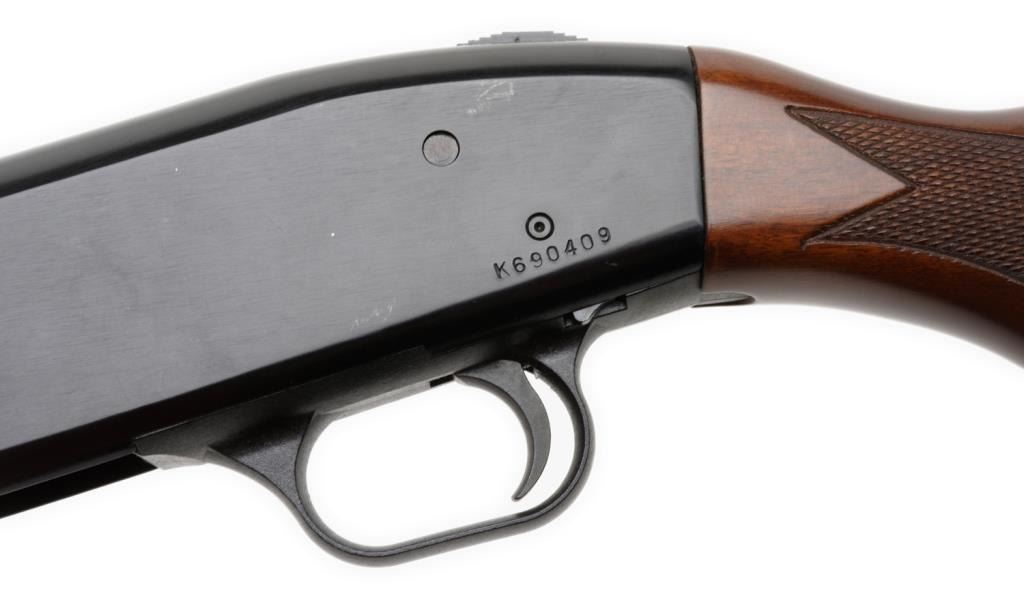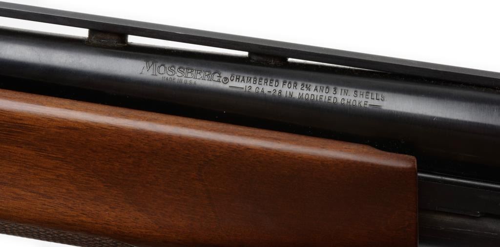*Mossberg Model 500A pump action shotgun, 12 gauge, 28” ventilated rib barrel, S/N K690409, blued finish, checkered wood stocks in overall fine condition with factory instructions. Est.: $150-$300.