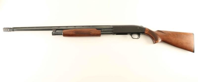 American made slide action repeating shotgun chambered for 2 3/4" or 3" 12 gauge shells, manufactured circa 1977-1998. Features a blued 26" vent rid barrel with C-Lect-Choke adjustable choke system, no front sight, 1/2 length tube magazine, smooth trigger with beveled edges, black finished aluminum receiver, sliding safety, press checkered slide handle and pistol grip shoulder stock with serrated black buttplate. Shotgun retains approximately 70% of it's original finish showing moderate wear and scattered rust & pitting on the right side of the barrel. Action is smooth, bore is excellent and the wood stock is fine. Condition is near NRA Good. ***Modern Firearm***