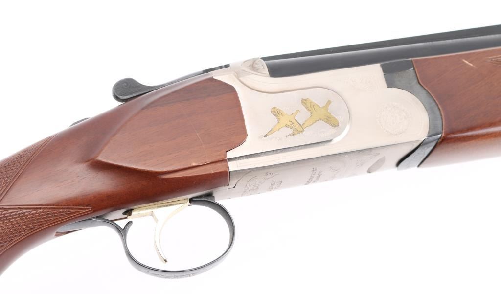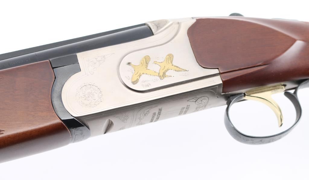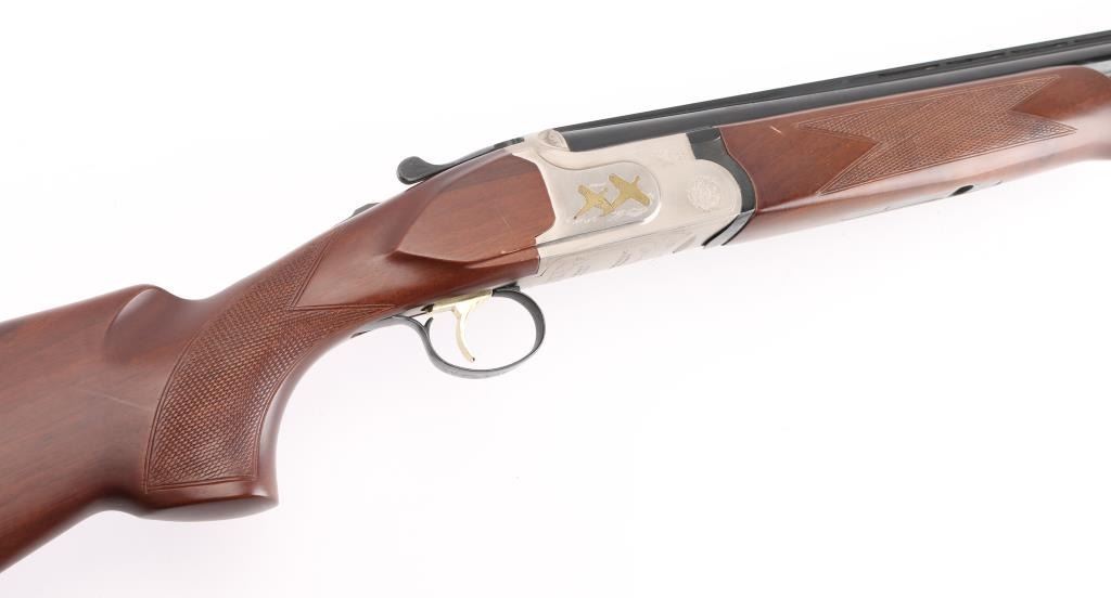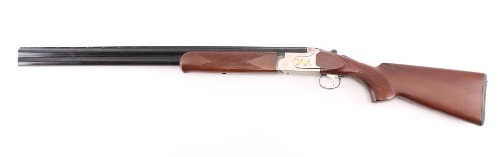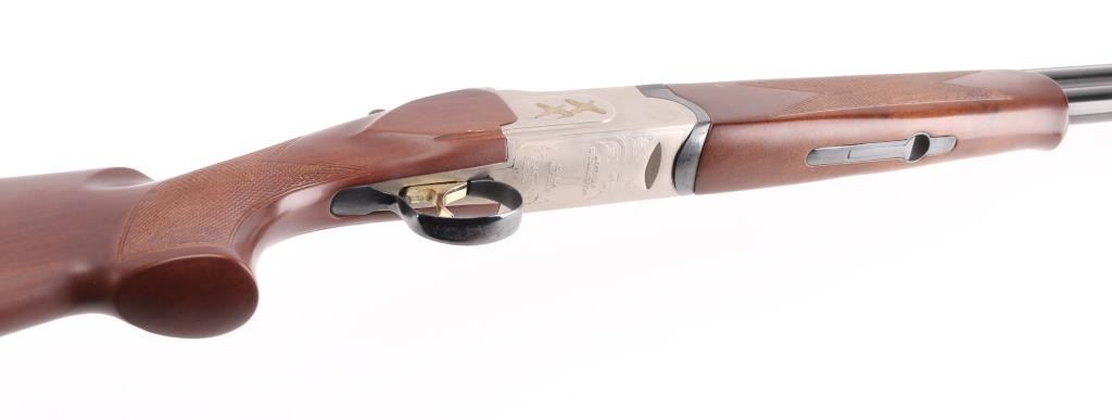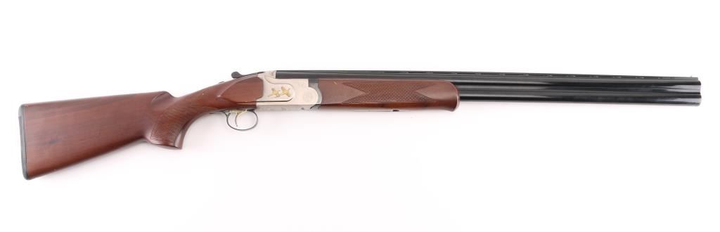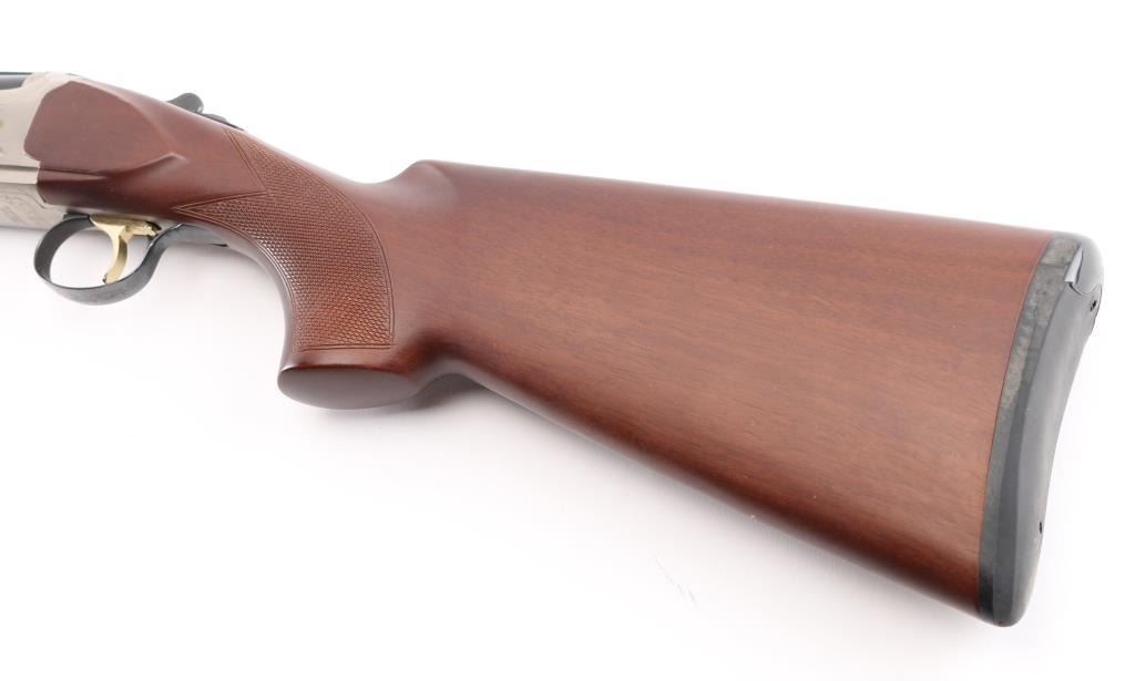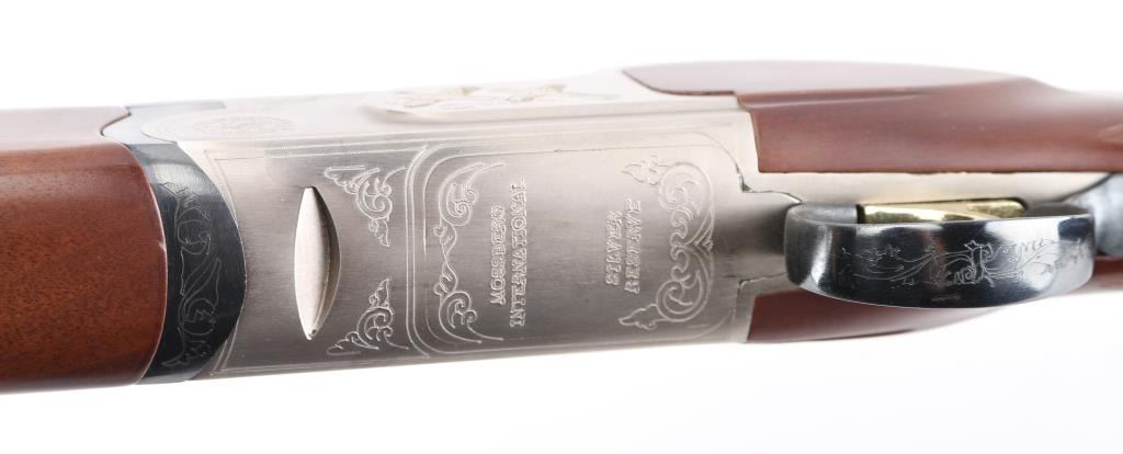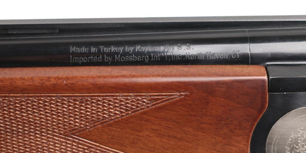 SN: TR12017106 Over/under double barrel boxlock shotgun chambered in 12 Ga. for 2 ¾” or 3” shells, manufactured in Turkey by Kayhan Art. Imported by Mossberg Int’l Inc. of North Haven, CT with import mark on the left side of the barrel. Features blued 28” barrels with ventilated checkered sighting rib & improved cylinder/improved modified removable chokes, extractor, brass bead front sight, single selective smooth gold trigger, sliding tang safety/barrel selector, satin silver finished receiver with light coverage floral engraving & gold filled grouse, knurled top lever, checkered wood Schnabel forend and semi-pistol grip shoulder stock with rubber recoil pad. Stock dimensions: drop at comb – 1 3/8”, drop at heel 2” and length of pull 14 1/8”. Shotgun retains approximately 99% of its original finish showing little to no visible wear. Stock and forearm have a couple of shallow scratches on right side. Action is tight, the bores are excellent. Condition is NRA Excellent. ***Modern Firearm***